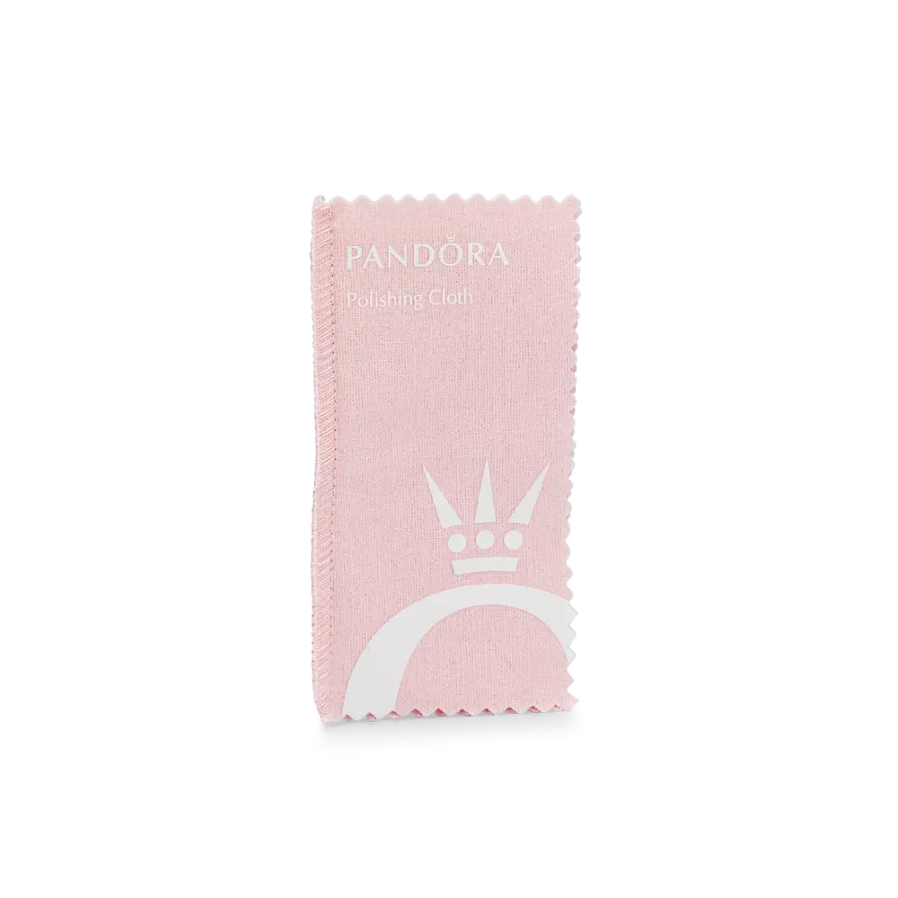 A great way to keep your Pandora jewelry gleaming is with our special double-sided polishing cloth. Rules to remember: The white side (infused with a gentle cleaning solution) is for polishing precious metals like sterling silver and 14k gold. The pink side (untreated) is for polishing plated jewelry such as Pandora Rose and Pandora Shine.