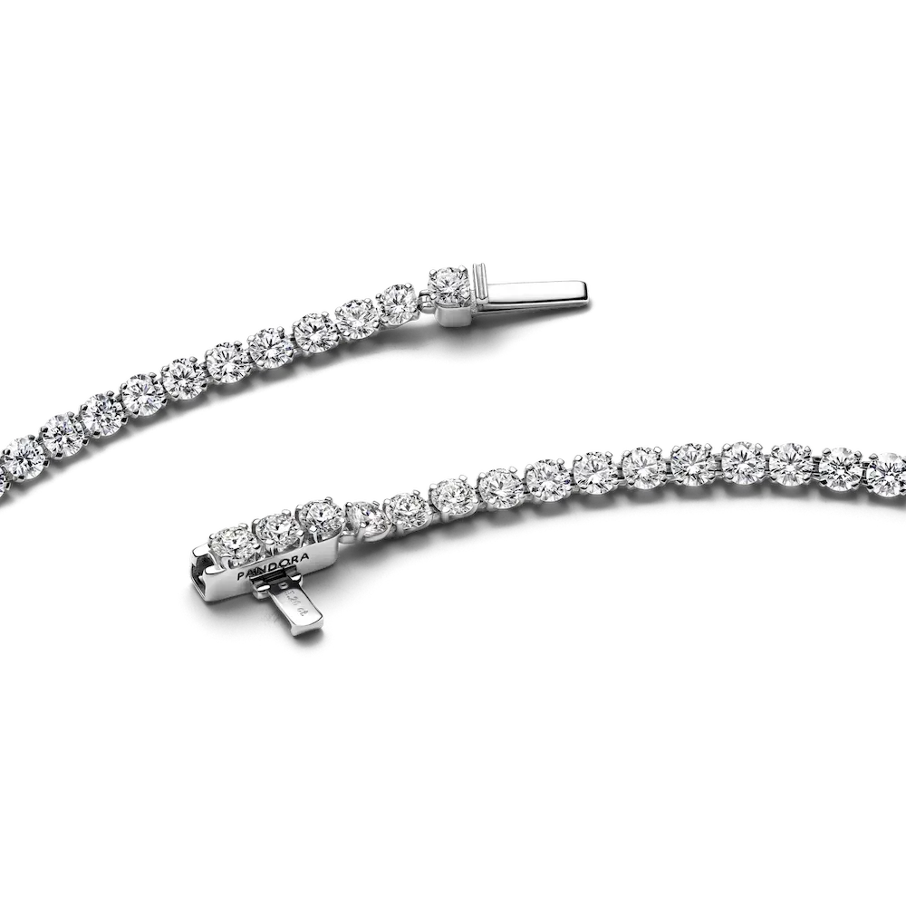 Our Pandora Era 14k White Gold Tennis Bracelet is the bracelet you’ll never want to take off. Featuring round brilliant-cut lab-grown diamonds that wrap all the way around the wrist, this contemporary take on a classic tennis bracelet radiates light from all angles. The bracelet is crafted from 14k white gold, while the diamonds are all prong set, allowing maximum light to reflect through the stones and make your jewelry shine brighter. To ensure our rigorous standards of quality in colour and clarity, each lab-grown diamond has undergone an additional high heat and pressure treatment prior to cutting and polishing. Please note, the total carat weight (ct TW) will vary based on size of bracelet: size 16 comes with 4.60 ct TW (46 stones), size 18 comes with 5.20 ct TW (52 stones), and size 20 comes with 5.80 ct TW (58 stones).