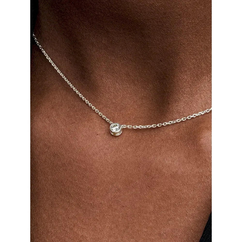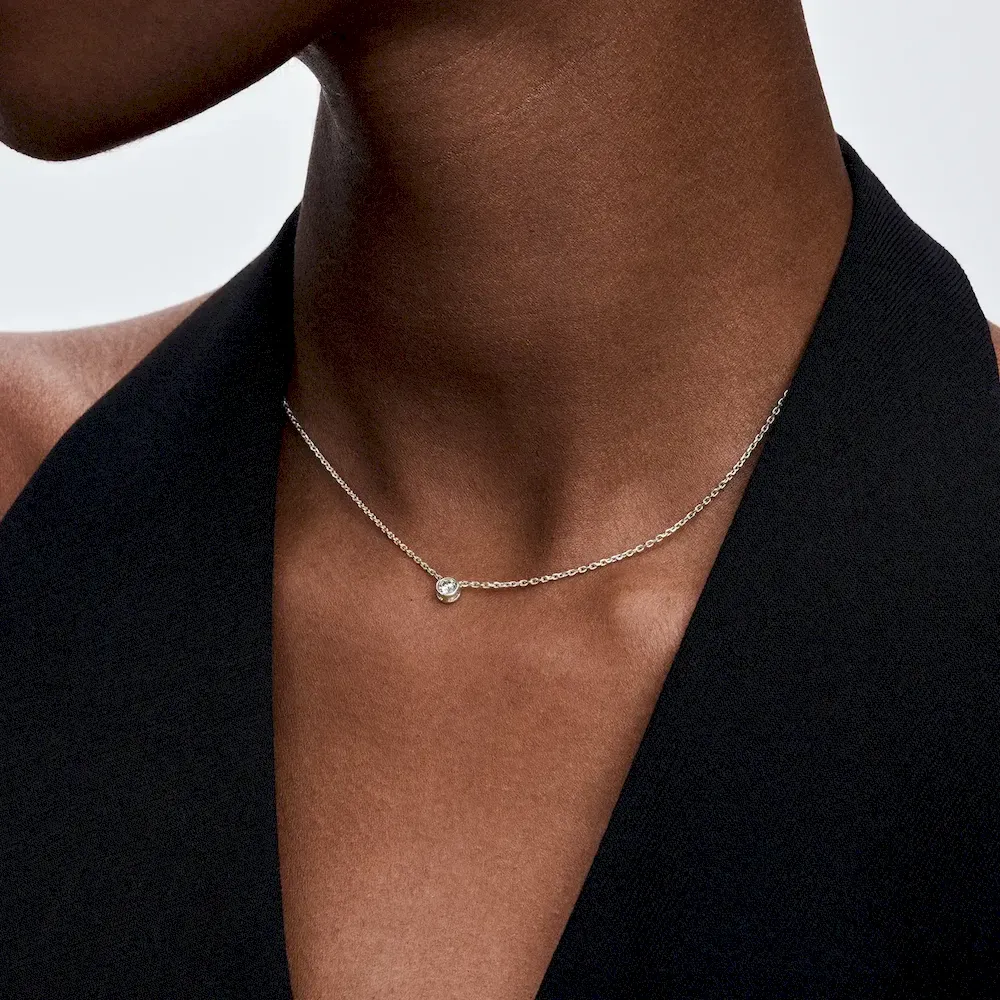Meet your new essential necklace: the Pandora Era Bezel Sterling Silver Lab-grown Diamond Pendant Necklace. This sterling silver pendant necklace features a 0.15 carat lab-grown diamond in a bezel setting with a sleek, contemporary aesthetic. Cut-outs on the back and sides of the bezel setting let in the light for ultimate sparkle. The pendant moves freely along a diamond-cut cable chain, adjustable to two lengths. A classic that brilliantly rises above time, it’s the perfect elevated staple for your everyday looks. Each Pandora Lab-grown diamond is treated with a post-growth color enhancement called annealing.