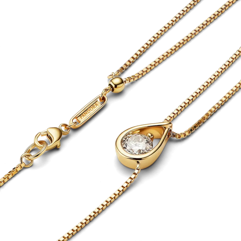 Discover lab-grown diamonds as you’ve never seen them before. A radiant 0.75 carat lab-grown diamond floats within our unique infinity motif crafted in 14k gold, creating a captivating centerpiece for this pendant necklace. Our fluid infinity design symbolizes infinite joy, optimism and strength. The round brilliant excellent cut lab-grown diamond is suspended from a refined box chain in 14k gold, which doubles up on one side to add a modern twist to the design. The double chain leads to a sliding ball closure, allowing you to adjust the length of the necklace so it shines on any neckline. Pandora Infinite lab-grown diamonds at and above 0.50 carat are certified by IGI. Each Pandora Lab-grown diamond is treated with a post-growth color enhancement called annealing.
