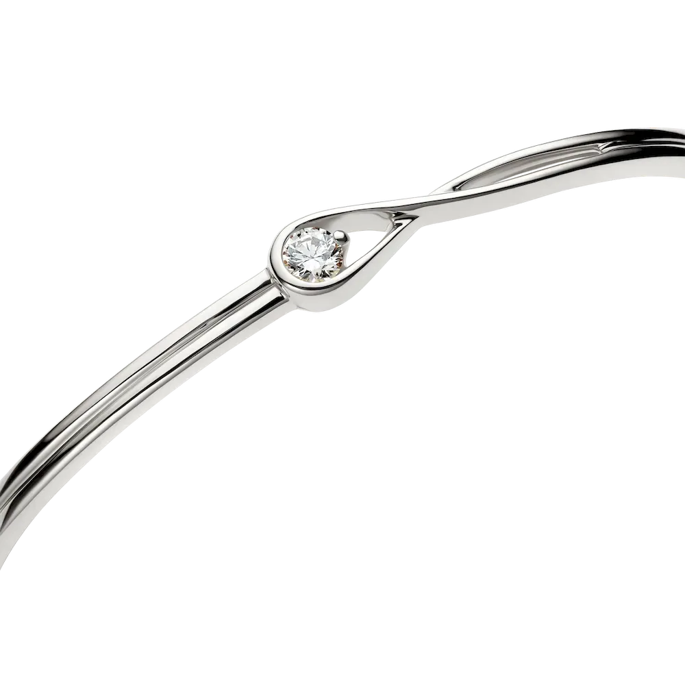 Celebrate your power to shine with this 14k white gold bangle, hand-set with a radiant 0.25 carat lab-grown diamond. The round brilliant excellent cut lab-grown diamond floats inside our unique infinity motif, which flows around the stone as if it’s ethereally suspended in mid-air. Our closed bangle design features a slender profile and functional hinge and clasp mechanisms, promising security and comfort. We recommend handling it with extra care to ensure optimal functionality and longevity. Let yours shine alone or inspire an elevated everyday stack. Each Pandora Lab-grown diamond is treated with a post-growth color enhancement called annealing.