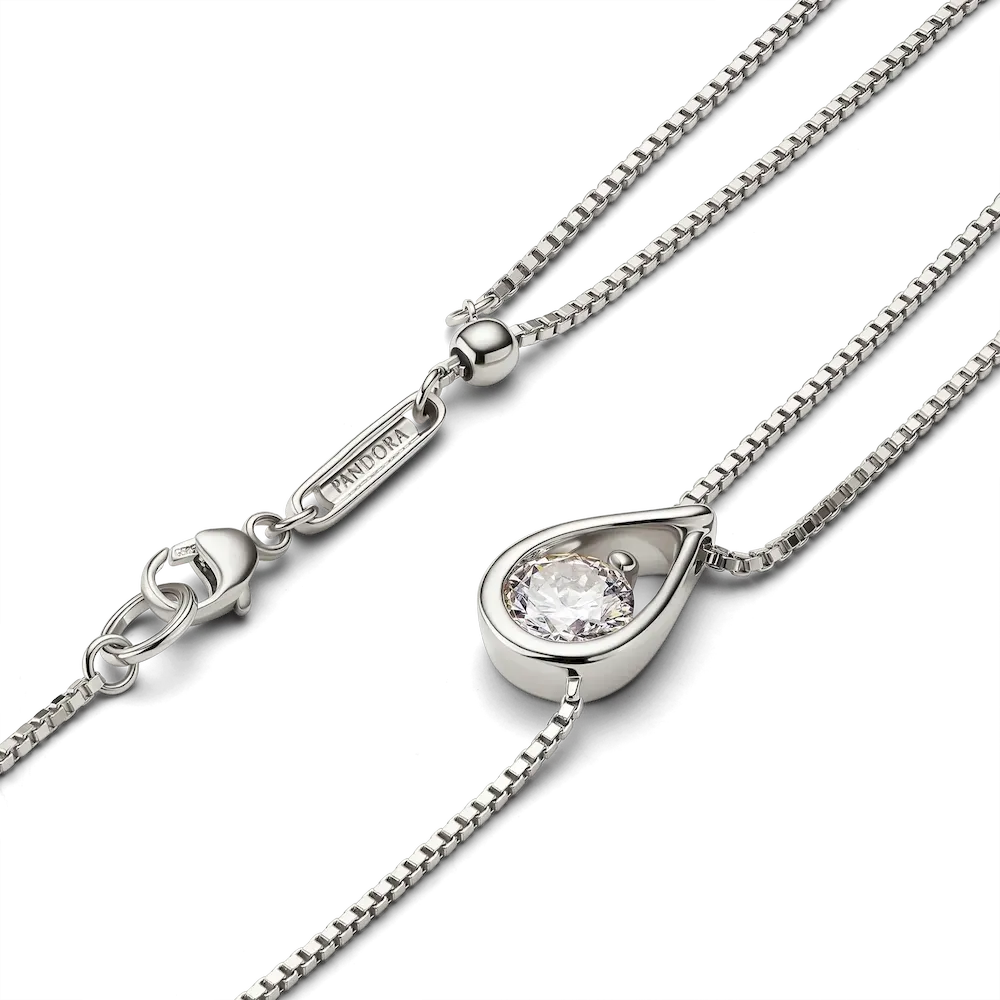 Pandora Infinite 14k White Gold Lab-grown Diamond Double Chain Collier Necklace
