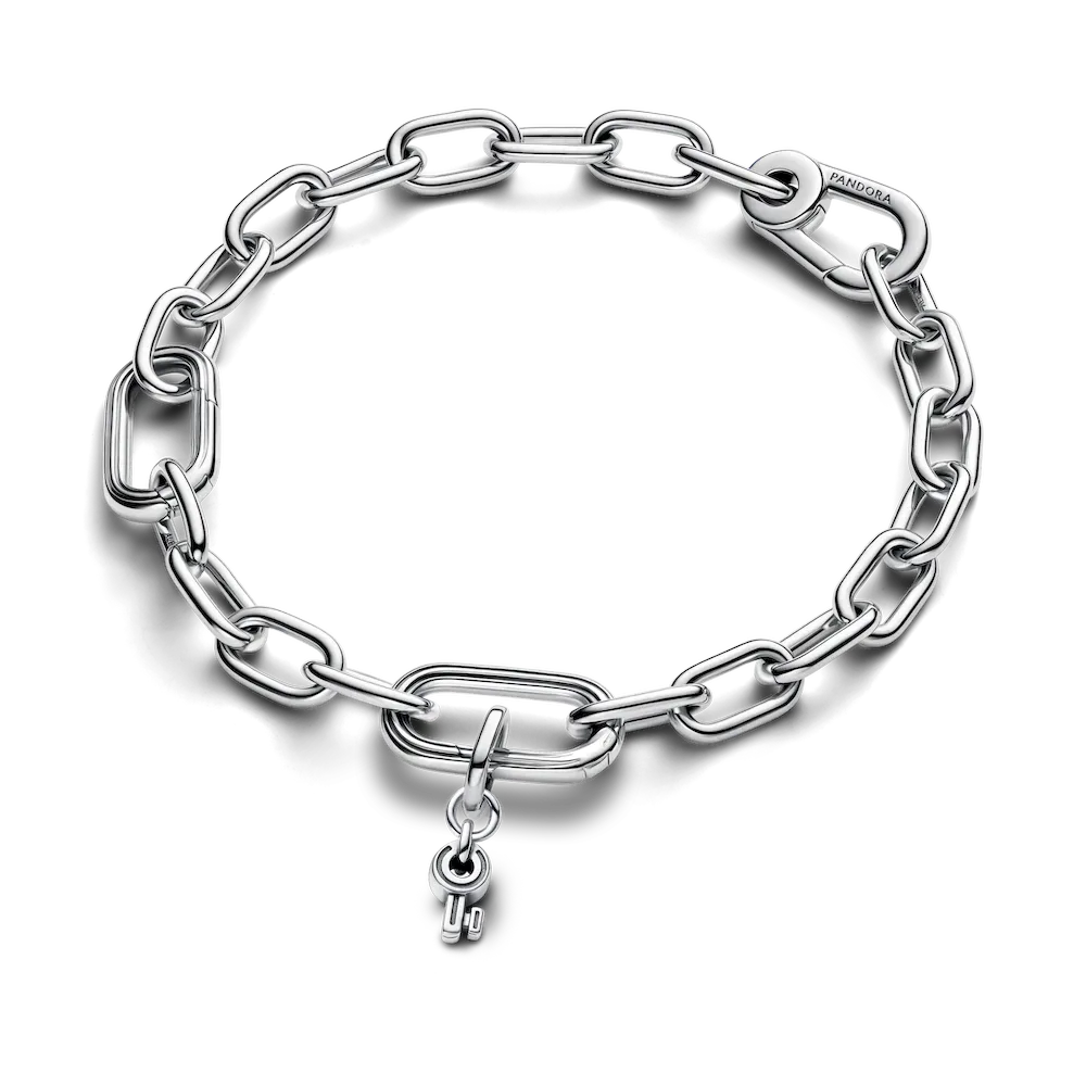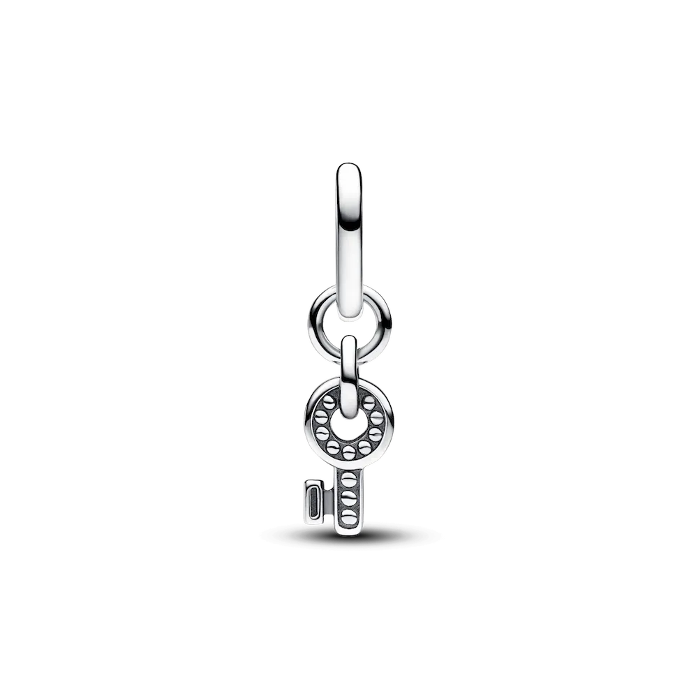 Find your match with the Pandora ME Key Mini Dangle Charm. This sterling silver key charm has a squared profile and grooved lines for a retro feel, with microbeads adding texture on one side. Pair it with the Pandora ME Keyhole Heart Mini Dangle Charm to symbolise those relationships that just