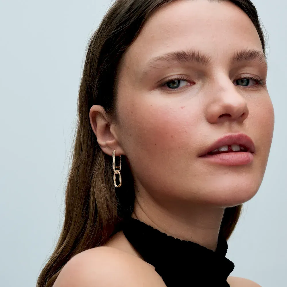 Enhance your styling possibilities with the Pandora ME Rectangular Openable Link. Featured in our 14k gold-plated unique metal blend, this rounded rectangular link features grooved lines, polished inner and outer sides and a spring back function for secure closure. Give yourself the freedom to mix and remix your look with this essential piece. Can be styled on bracelets, necklaces or earrings to adjust Pandora ME link chains, with up to 8 mini dangle charms or 2 medallion charms.