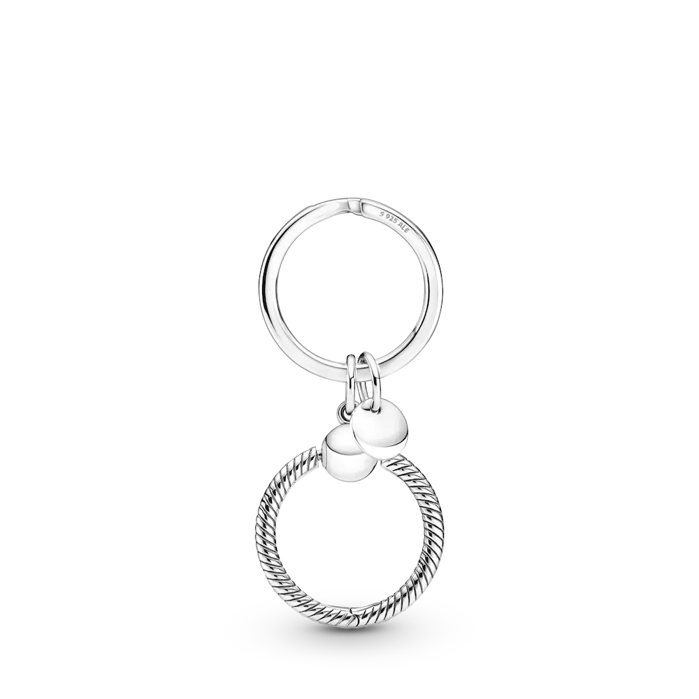 Elevate your everyday keys with the Pandora Moments Charm Key Ring. This sterling silver key ring includes a charm holder with Pandora’s iconic snake chain pattern that can hold a maximum of three charms, dangles or pendants. The key ring also features a small dangling tag with the Pandora logo. Brighten your day with a key ring made to hold your favorite charms that show off who you are and personalize your style.