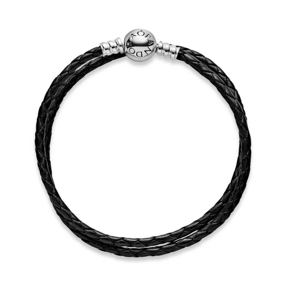 Pandora Moments Double Black Leather Bracelet