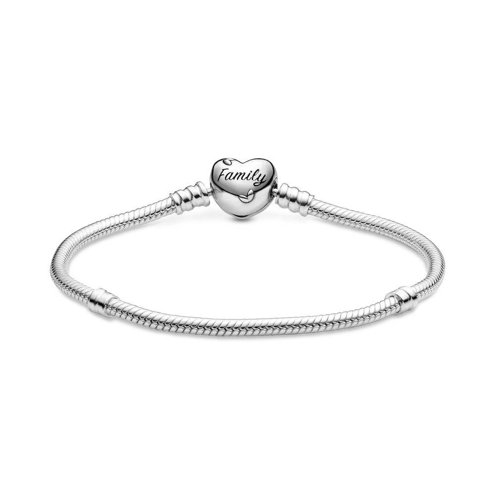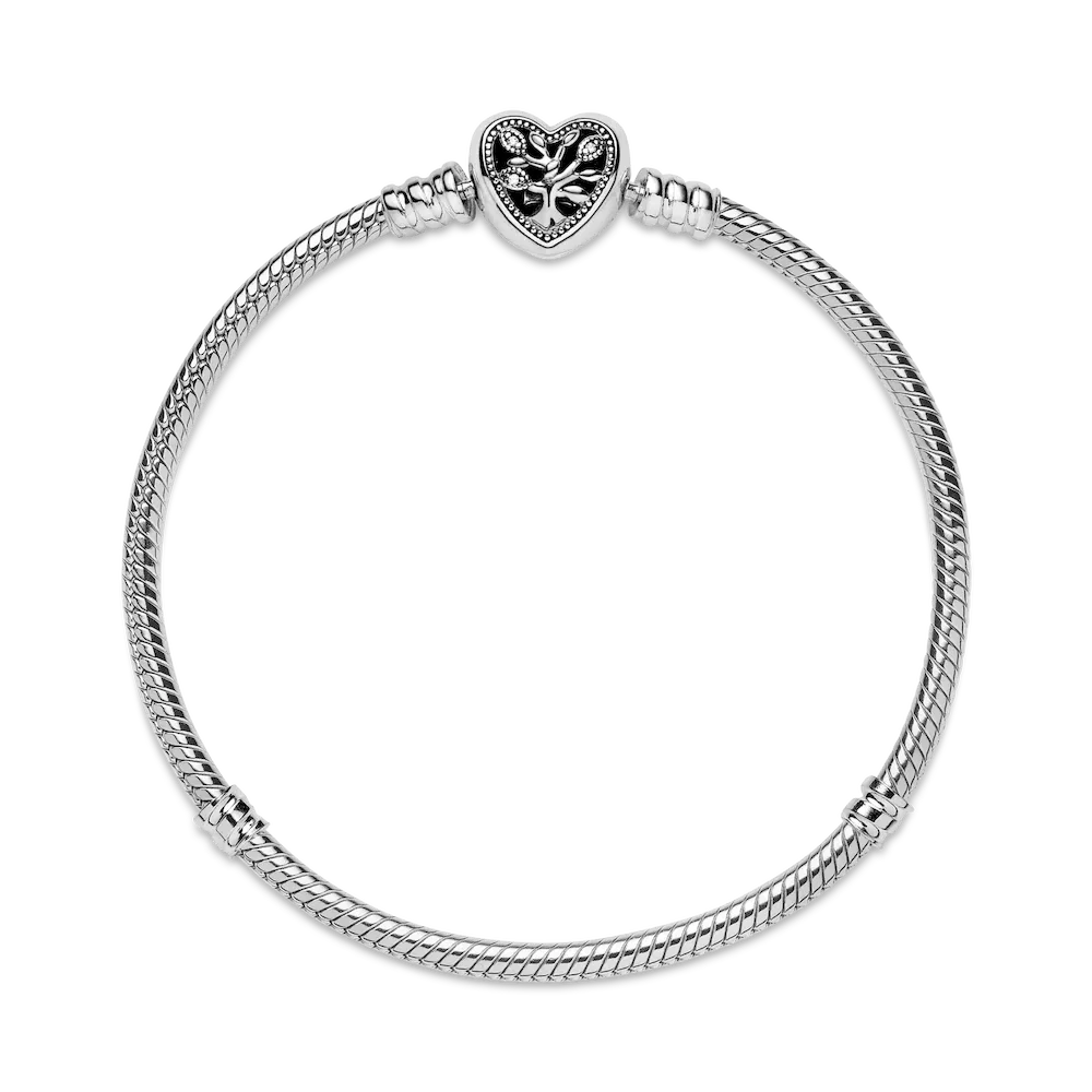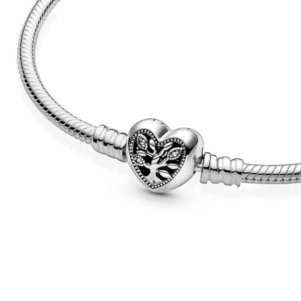 Pandora Moments Family Tree Heart Clasp Snake Chain Bracelet