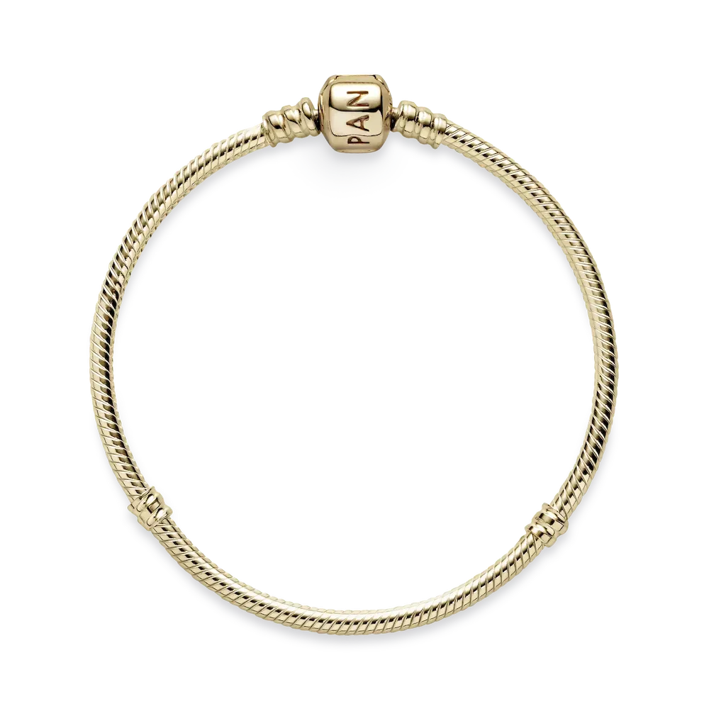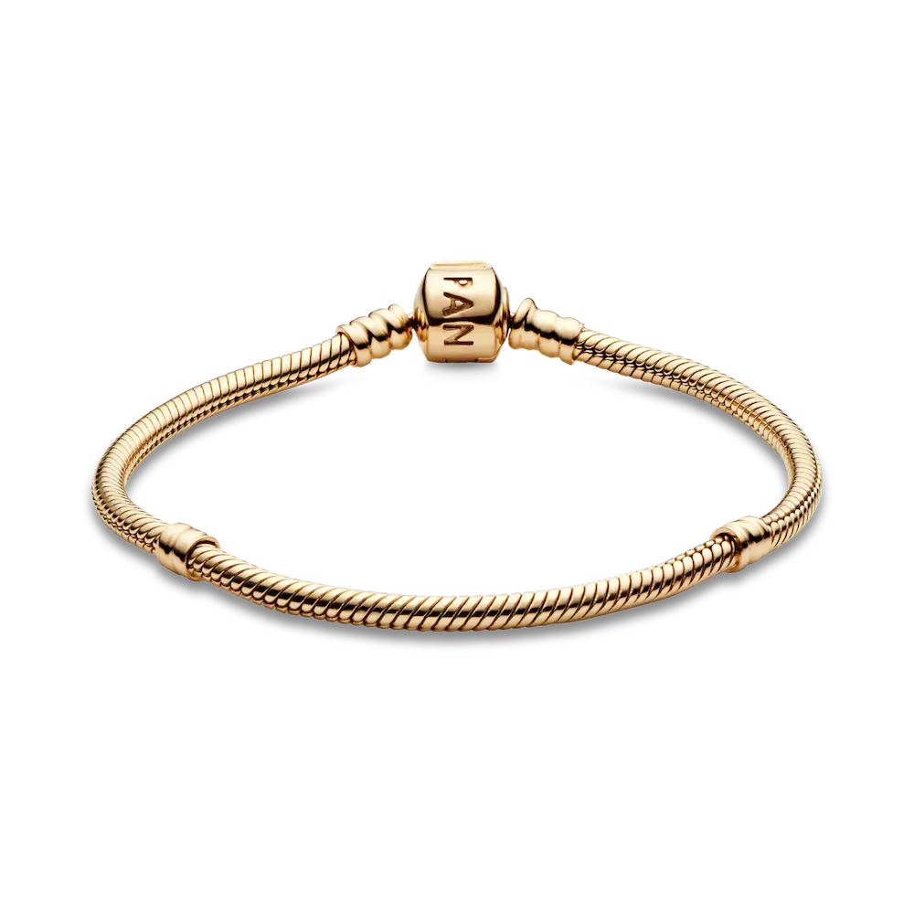 This charm bracelet is the perfect foundation for your Pandora collection. Hand-finished in 14k gold, this snake chain bracelet features Pandora’s iconic barrel clasp for a secure fit while the innovative threading system makes it easy to screw charms onto your bracelet. Simply add a couple of clips to divide the bracelet into three sections, then choose your favourite Pandora charms to express your unique style.