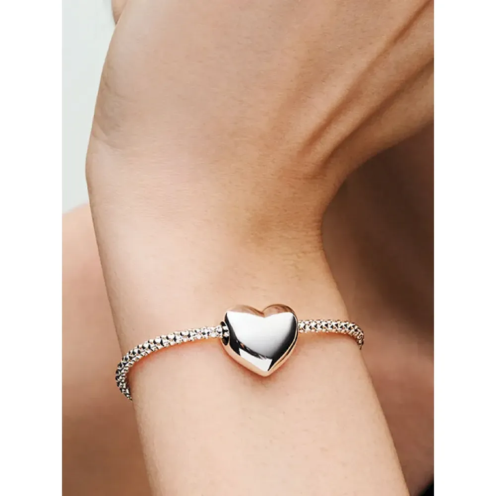 Meet the Pandora Moments Studded Chain Slider Bracelet – our iconic Studded Chain, reimagined. Move the slider to adjust the bracelet for a perfect fit – silicone on the inside keeps it in place. Functional end caps click open to add your charms, and smaller decorative end caps finish the ends of the chain. The reflective studded pattern continues throughout the chain and end caps for a camouflage effect. You can style this sterling silver bracelet with up to 10 charms or dangle charms – stack it with our existing Studded Chain bracelets for a tonal or mixed-metal look.
