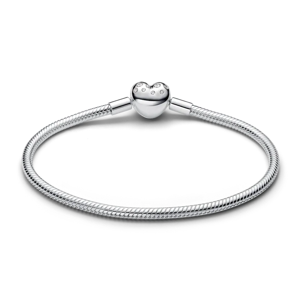 Pandora Sterling Silver Lab-grown Diamond Heart Clasp Snake Chain Bracelet