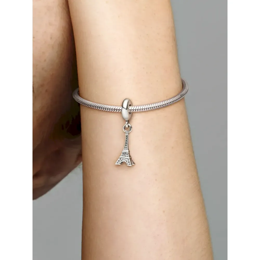 Say bonjour to your next charm. Add a little piece of Paris to your Pandora Moments bracelet or bangle with our Eiffel Tower charm. The miniature monument is made from sterling silver, one of our three signature metals. Style with other charms from the collection that tell your story in meaningful ways, adding that je ne sais quoi to your look.