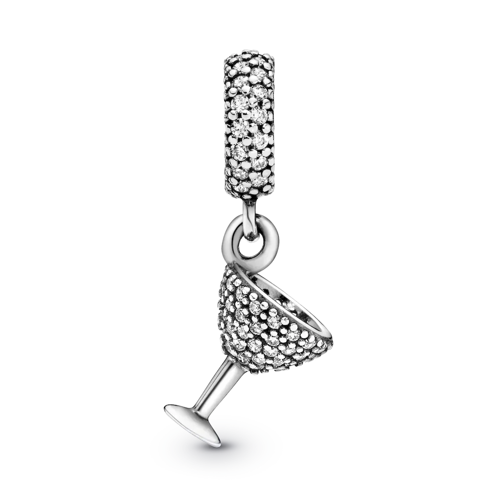 Raise your glass to style with this sterling silver dangle charm, shaped as a cocktail glass that’s been carefully set by hand with cubic zirconia stones. Wear the hand-finished style on a Pandora Moments bracelet or necklace to celebrate something special.