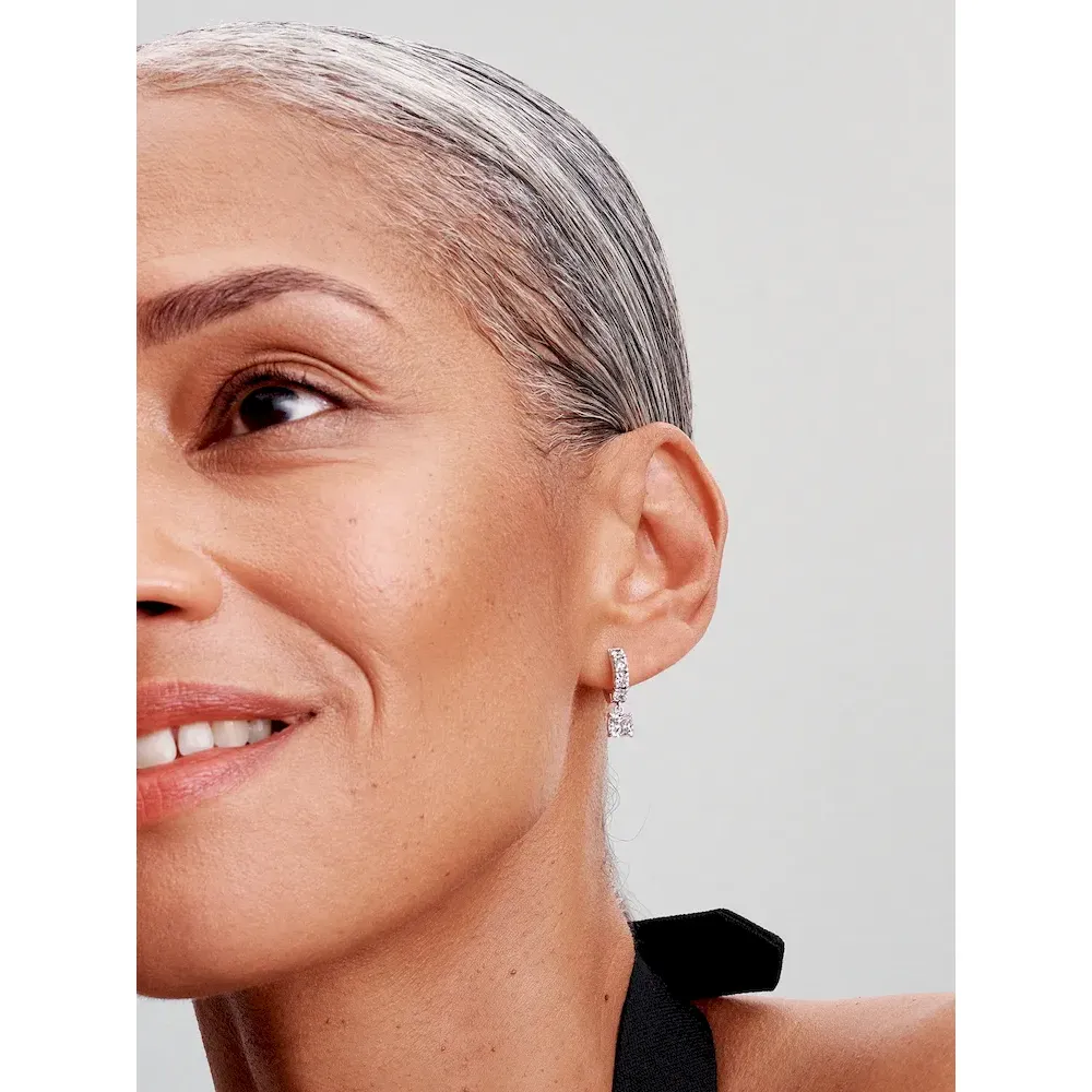 Sparkle all the way with our Pavé Dangle Hoop Earrings. Crafted in sterling silver, this pair combines two classic earring features to create a versatile piece that catches light and shines bright. The hoops, covered in pavé, are joined by a dangling stone, which adds a sense of movement to the piece. Wear the pair as a part of a curated ear stack or solo for a subtle touch of sparkle.