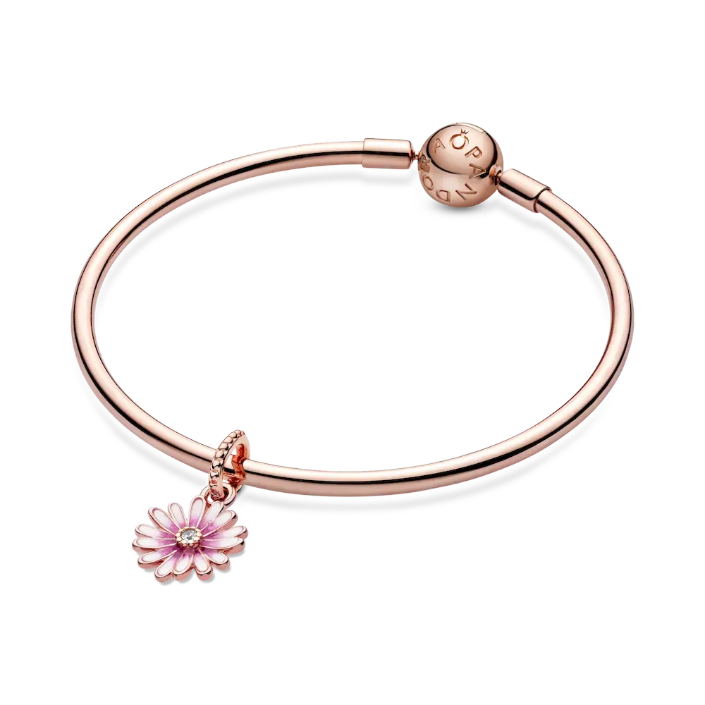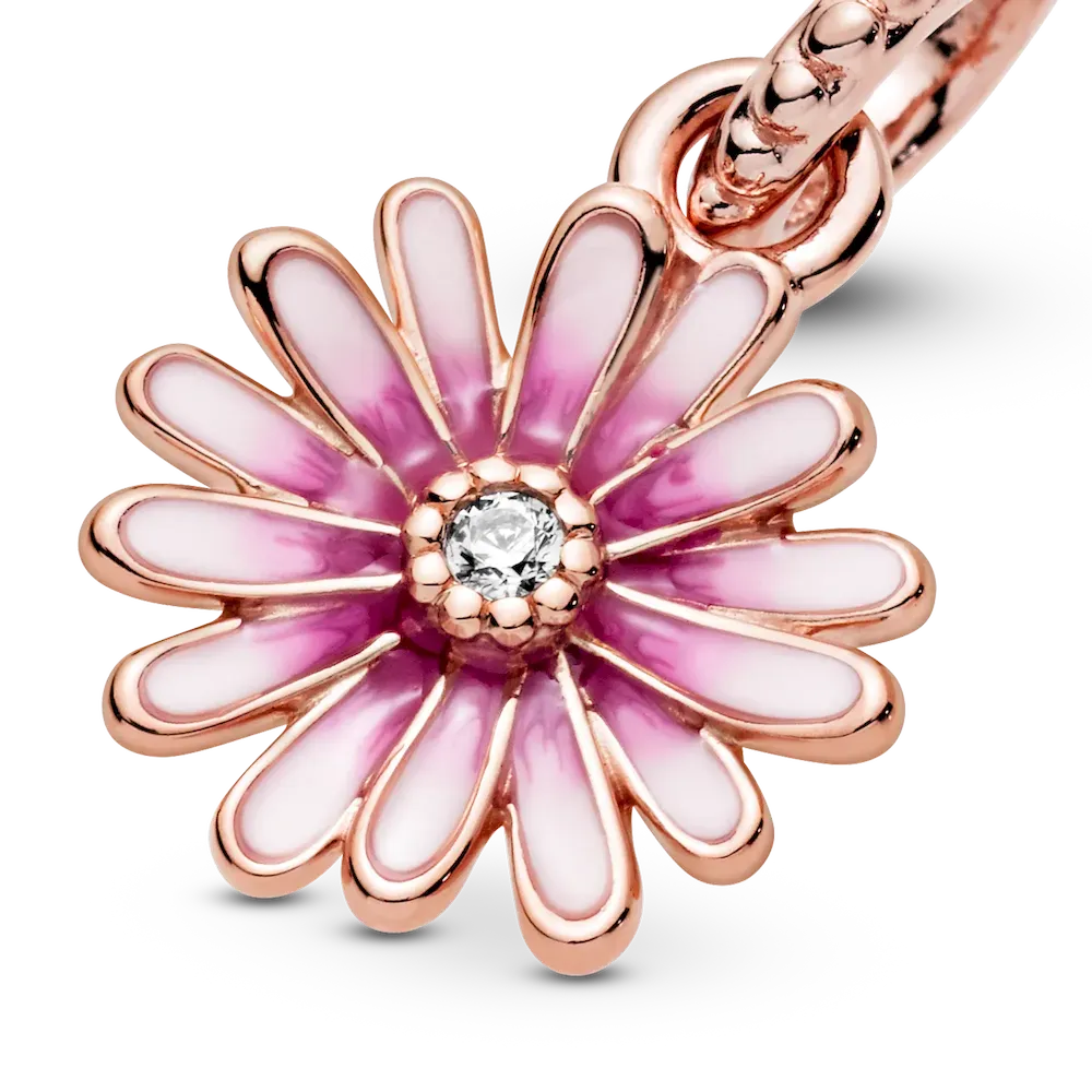 Celebrate spring in all of its glory with the Pink Daisy Flower Dangle Charm. Hand-finished 14k rose gold plating, the daisy charm features pink shaded enamel to bring the delicate, yet resilient flower to life. The sparkling centre of the flower is made from cubic zirconia and the back of the flower charm features polished heart detail. Wear as a reminder to stay strong or gift to someone as a symbol of freedom.