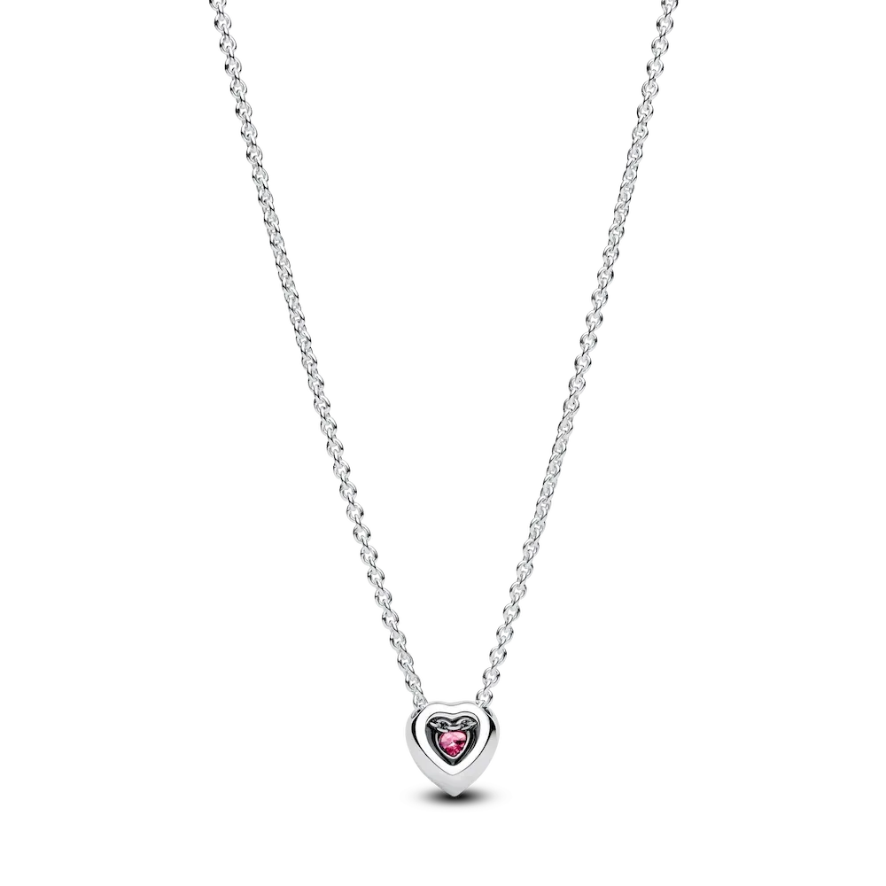 Embrace a dash of warm-toned color with the Pink Elevated Heart Necklace. Made of sterling silver, this collier necklace centers on one heart-shaped sparkling pink stone pendant. The center stone, which is raised, is surrounded by pavé. The chain’s length is adjustable and allows the pendant to slide along it, but the pendant does not detach. Inspired by feelings of love and gratitude, this collier embodies the warm and shining feelings that come from the heart.
