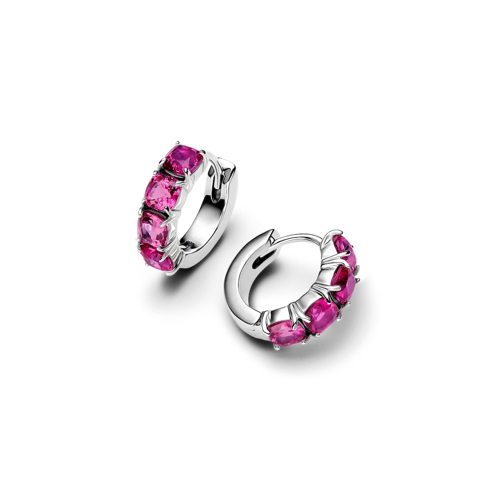 Add a touch of sparkle to your look with these delicate hoop earrings, featuring a row of phlox pink man-made crystals. Express yourself with this beautiful design.