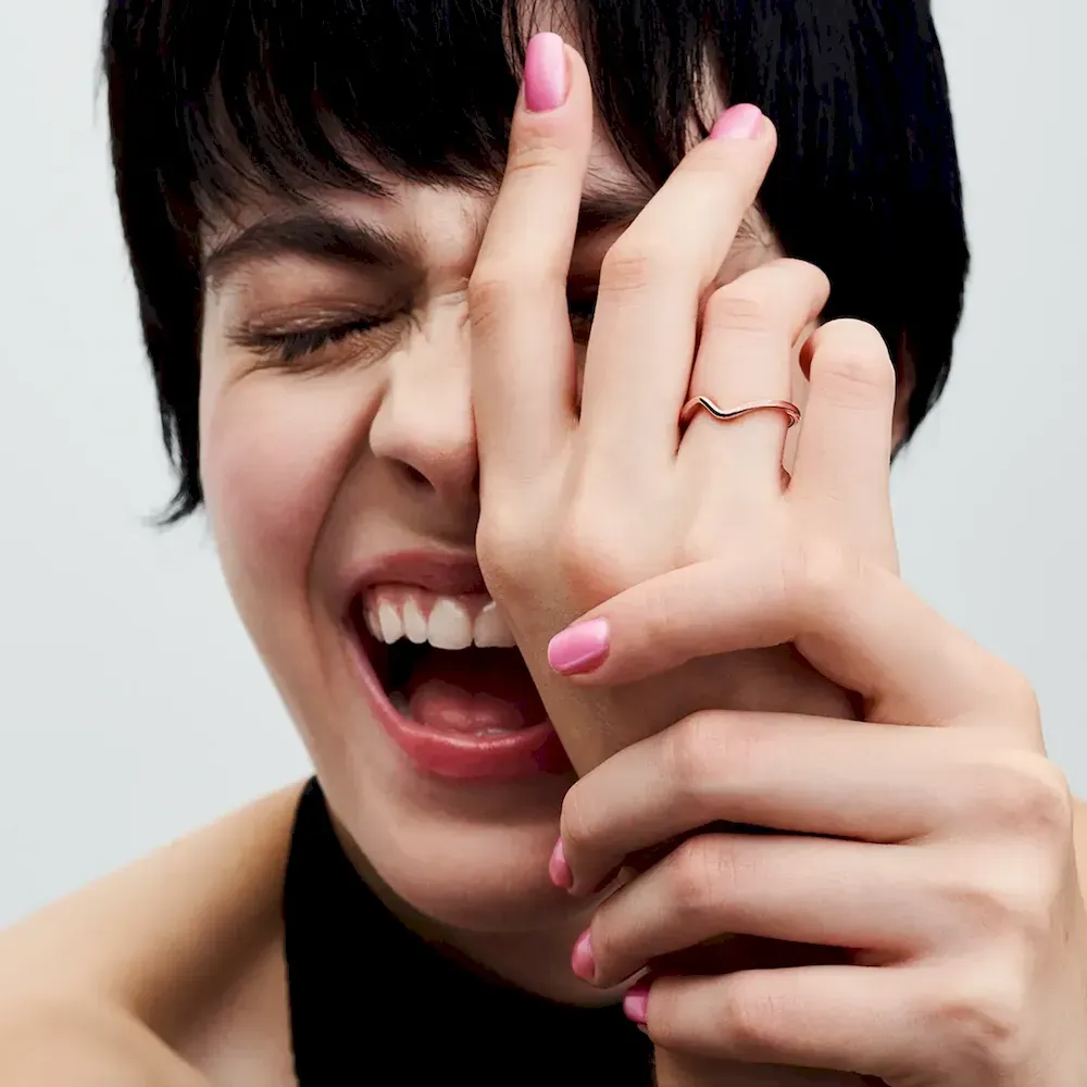 A new wave of stacking. Finished in 14k rose gold plating, our Polished Wave Ring curves to resemble the movement of a wave, with a smooth polished surface. Stack several 14k rose gold-plated rings together or combine with the pavé version in different metal tones for a contemporary look you’ll love for years to come.