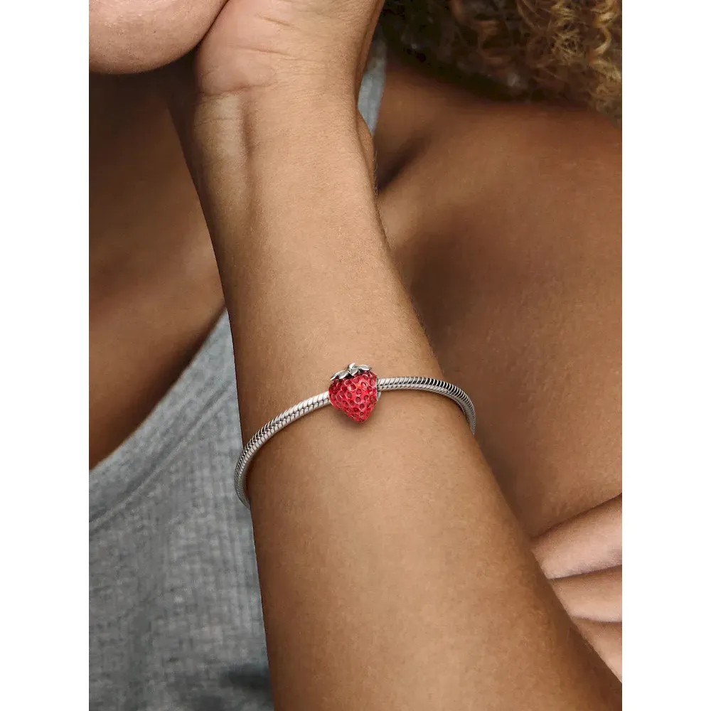 Add the lush flavor of fruit to your look with this sterling silver strawberry charm, hand-finished with transparent red enamel and lifelike seed details created by grooved indents under the enamel. Style it on your favorite Pandora Moments bracelets and charm holders and surround yourself with the feeling of a lazy picnic in the sun.