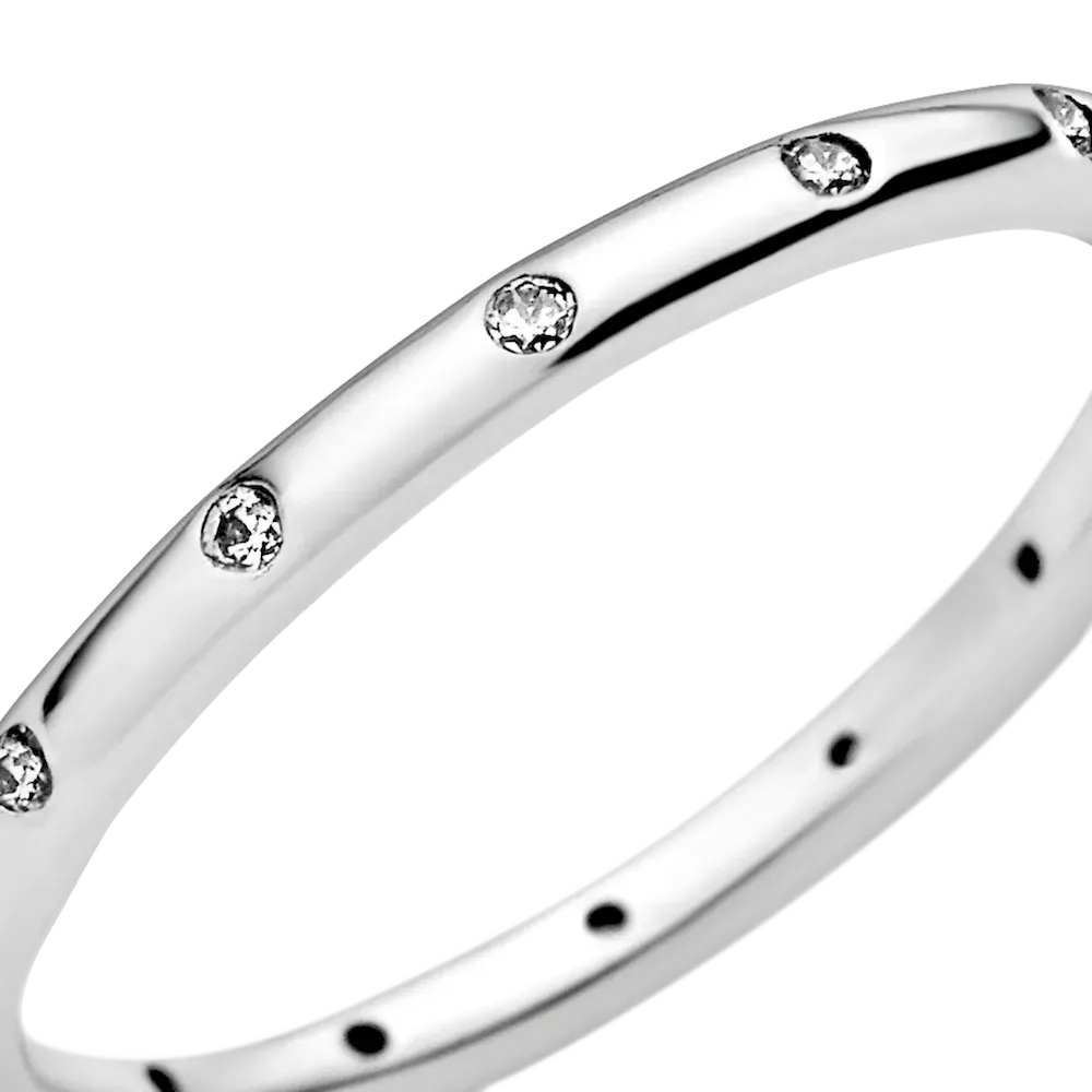 Add a subtle touch of sparkle to every outfit with our sterling silver ring, hand-finished and polished to a high shine. The classic eternity ring is perfect for any occasion and the cubic zirconia put the sparkle in your style. Simple yet stylish, it looks elegant worn alone or stacked with other Pandora rings in contrasting metal tones.