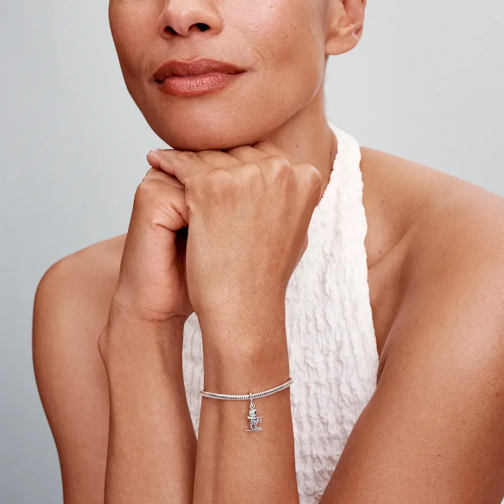 Make every day a winter wonderland with our Skier Dangle Charm. Crafted in sterling silver with sparkling stones and a lab-created opal head, our skier is complete with a full ski outfit, goggles and poles, ready for the slopes and all the fun the season brings.
