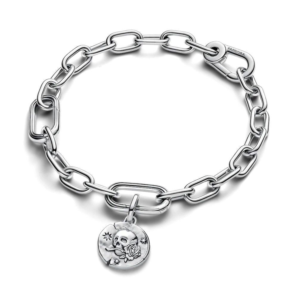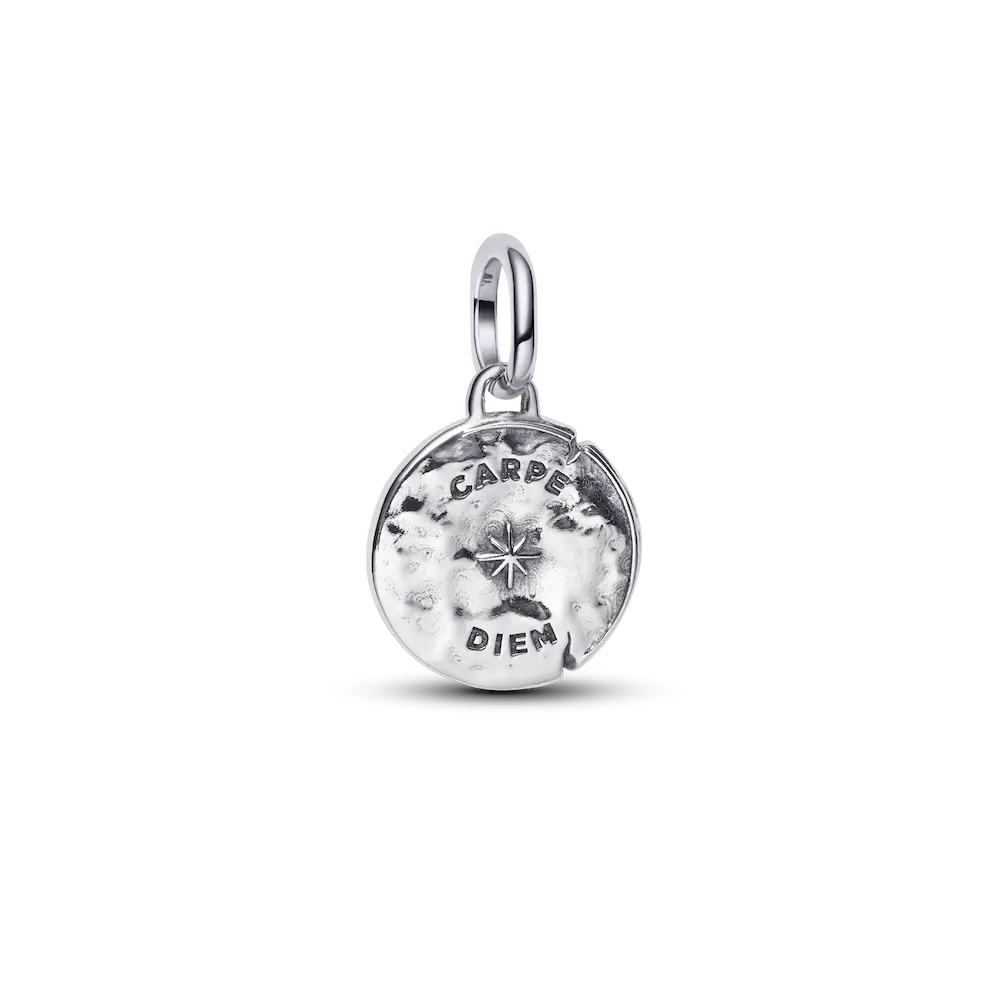 Embrace the now in sterling silver. With weathered detailing and a flush-set stone, this vintage-inspired medallion features a skull motif on the front and a ‘CARPE DIEM’ engraving on the back.