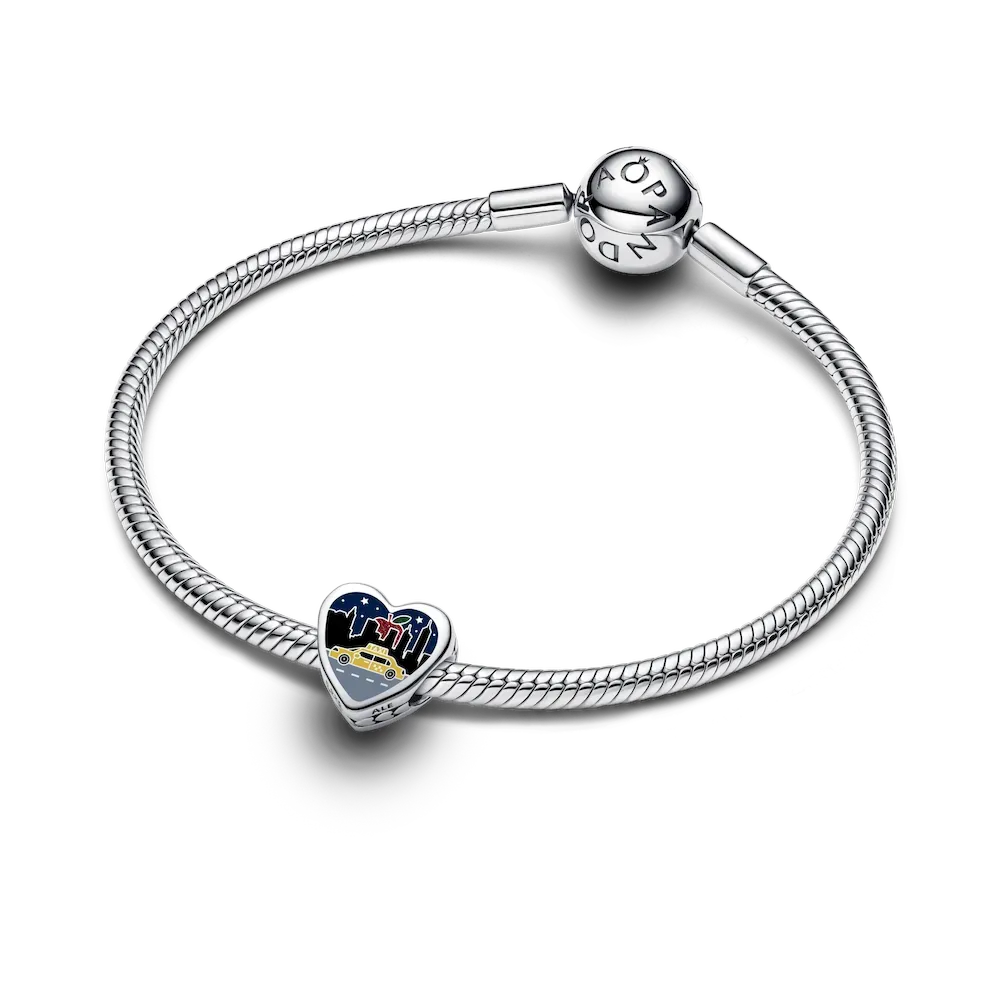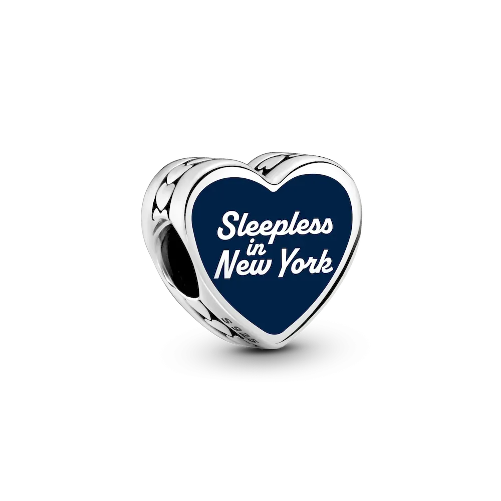Celebrate the city that never sleeps with the Sleepless in New York Charm, a must-have keepsake for any New York City lover. This two-sided sterling silver charm features colorful enamel details that bring the city to life. One side showcases the iconic NYC skyline with a classic yellow taxi and a bright red apple—a nod to the city’s nickname. Flip it over to reveal a blue heart inscribed with