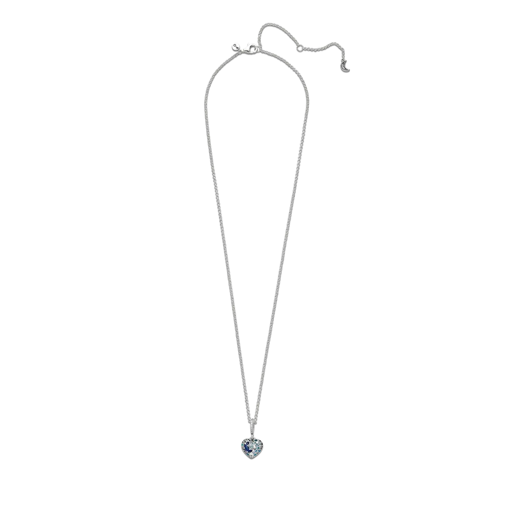 Sparkling Blue Moon & Stars Heart Necklace