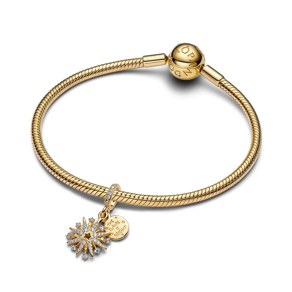 Make a statement with a charm that shines like a celebration. Featuring a constellation of stars and stones, and the engraved message ‘the future is bright’, this is your sign to seize the moment.