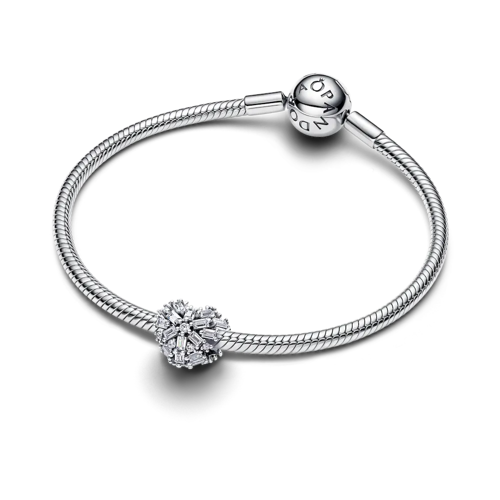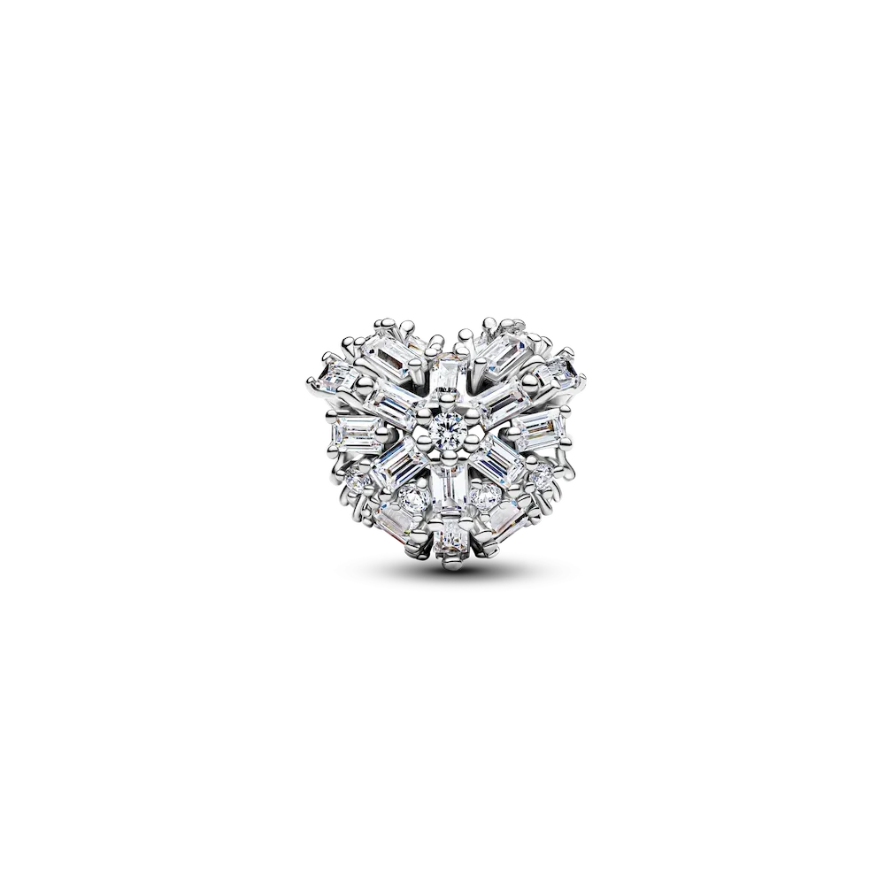 Spread love wherever you go with our heart-shaped charm. Crafted in sterling silver and embellished with clear cubic zirconia stones, it’s a charm that radiates warmth and energy.