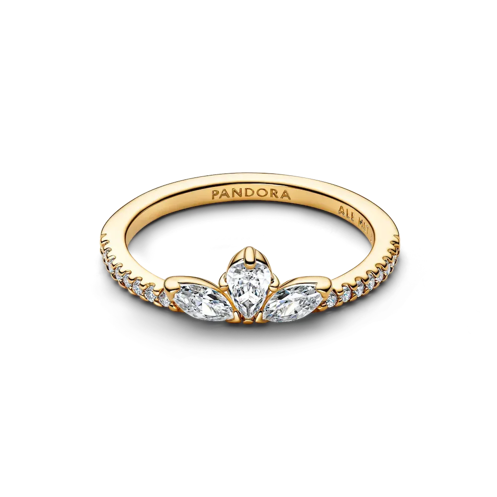 Celebrate the beauty of nature with this sparkling floral motif. Featuring a cluster of clear cubic zirconia stones and a 14k gold-plated band, it evokes the natural symmetry of the natural world.