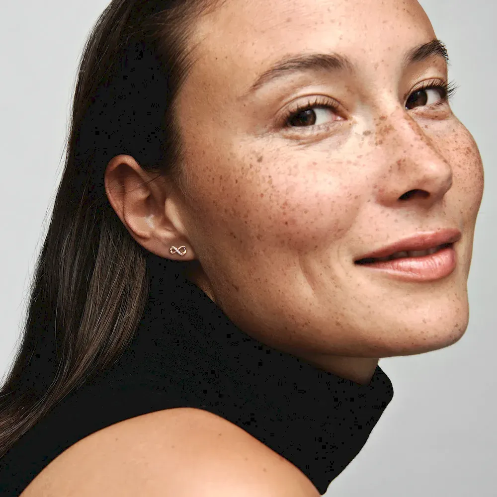 The ultimate symbol of eternal love, the infinity symbol features in these Sparkling Infinity Stud Earrings. A curved design means the earring rises in the centre, creating an eye-catching three-dimensional look. Plated with 14k rose gold and given a dazzling finish with eight micro and six bead-set round clear cubic zirconia, this is jewellery with subtle design and delicate form that’s still a talking point with its deeper detail.