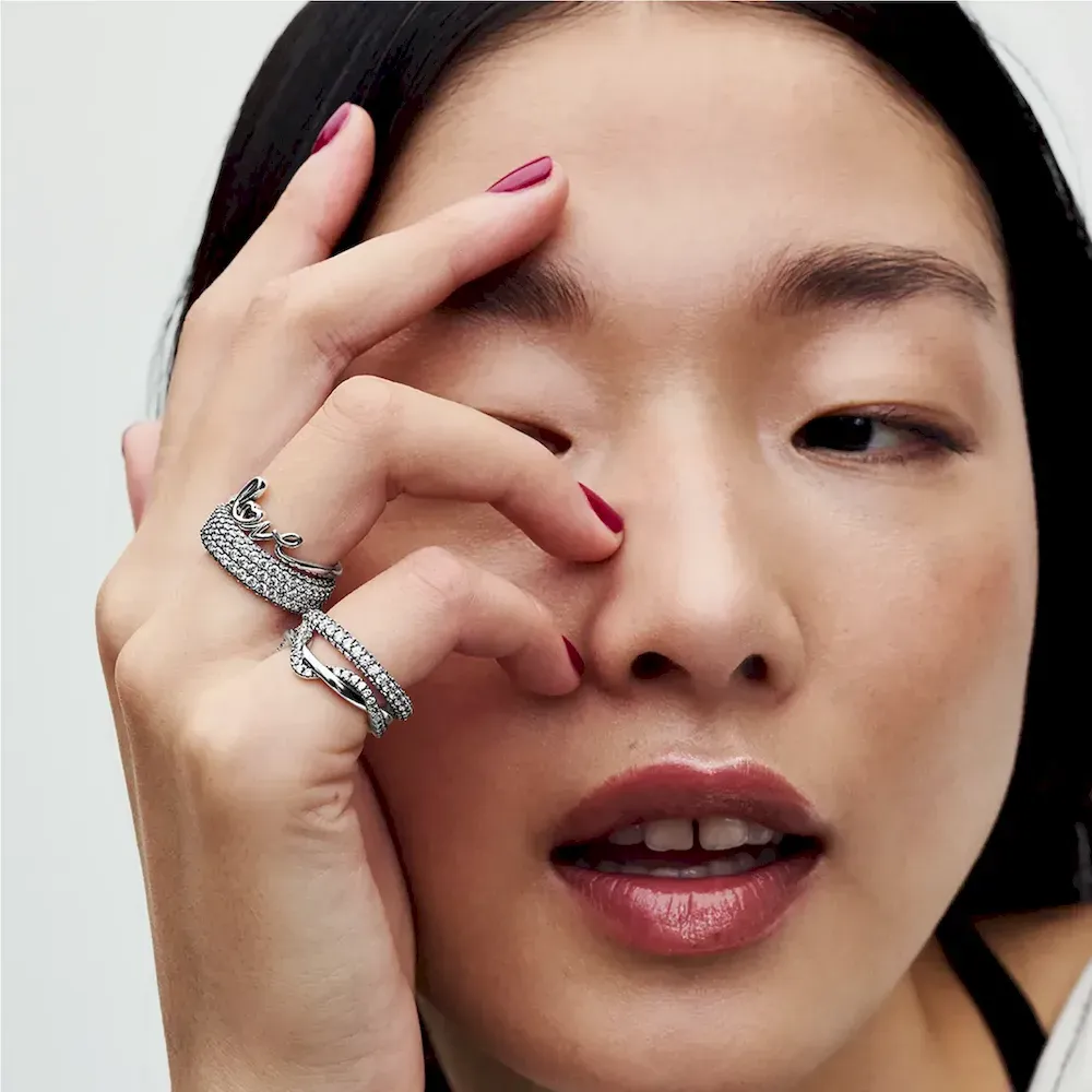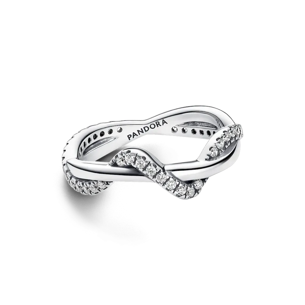 A new wave of stacking. Crafted from sterling silver, our Sparkling Intertwined Wave Ring is inspired by the movement of ocean waves. It features a smooth polished ring band with a wavier band entwined around it, set with a row of sparkling pavé. Wear it alone or stack it together with our plain or pavé wave rings for a contemporary look you’ll love for years to come.