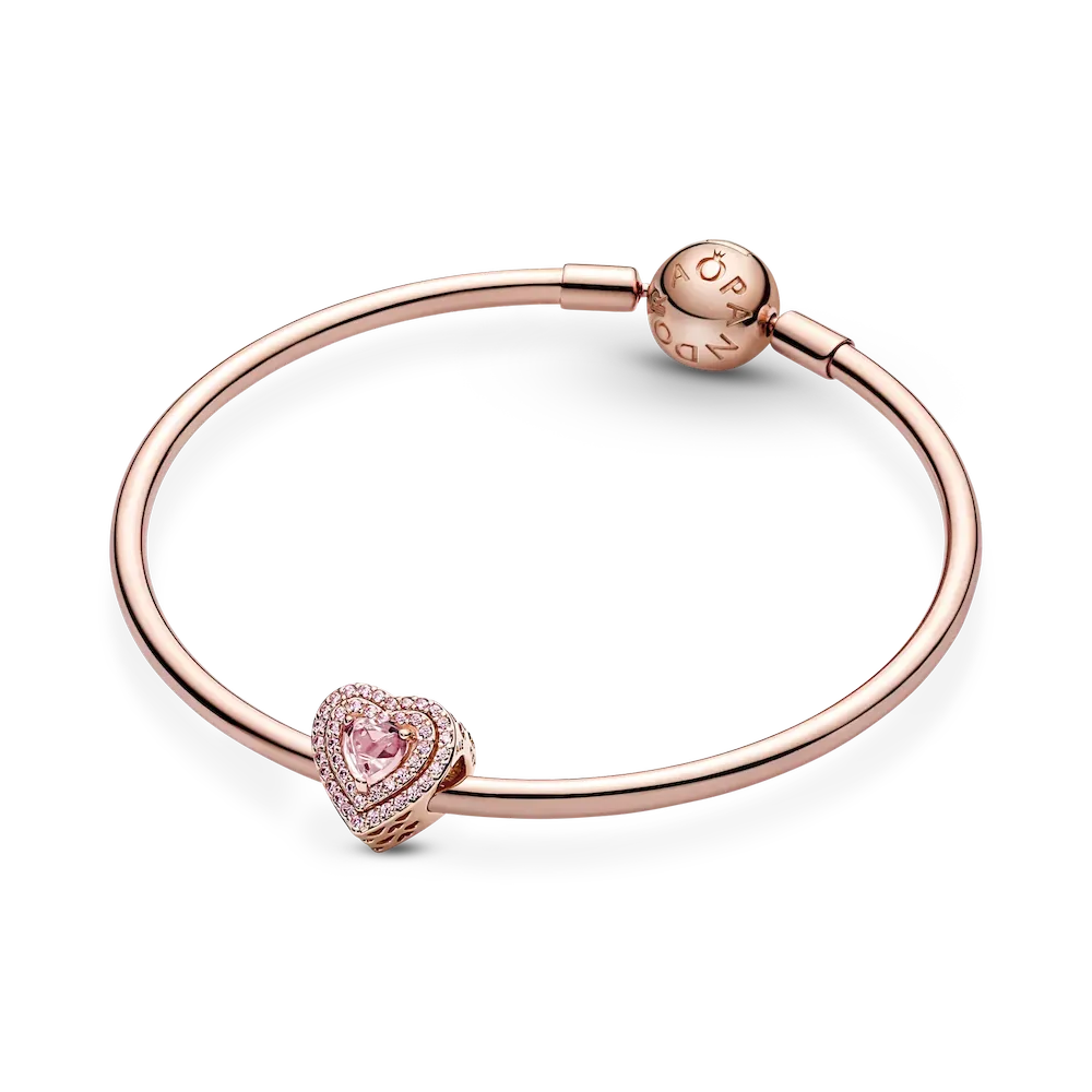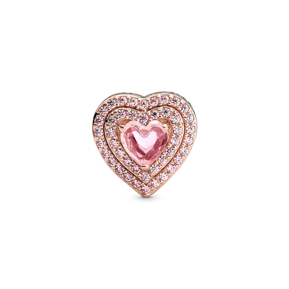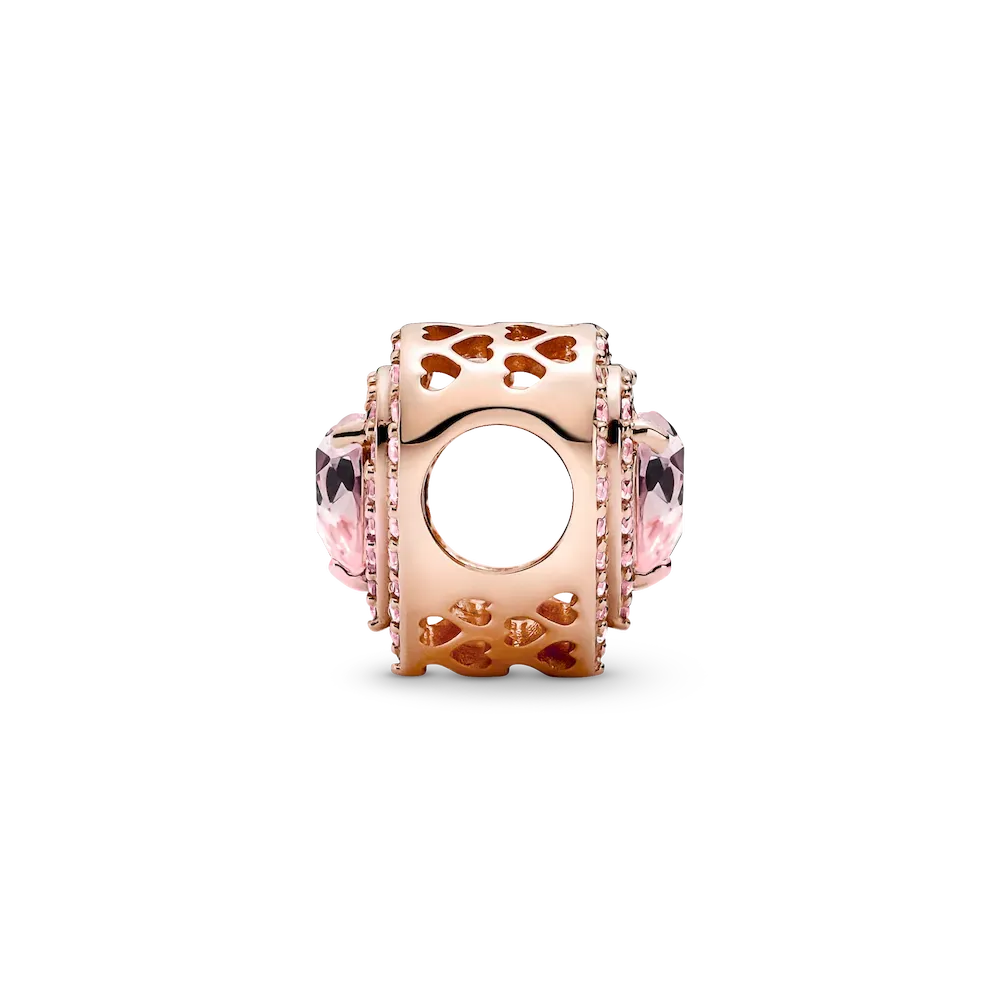Spread the love with the Sparkling Leveled Hearts Charm. Hand-finished in our 14k rose gold-plated unique metal blend, this charm features a central elevated heart-shaped orchid pink man-made crystal outlined by two halos of pink cubic zirconia. A cut-out heart pattern features on the sides. Make a sparkling tribute to love and add a romantic touch to any outfit with this stunning charm. Gift this heart charm to someone special to show how much you care.