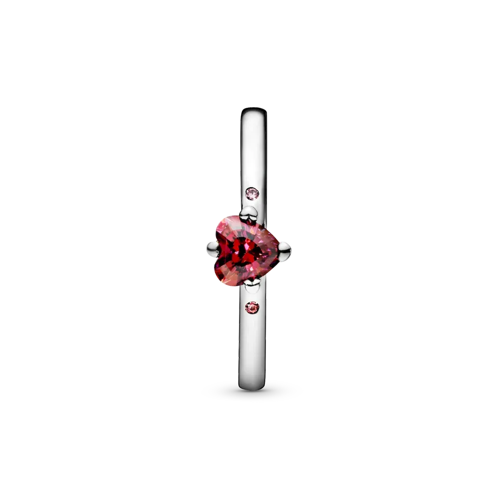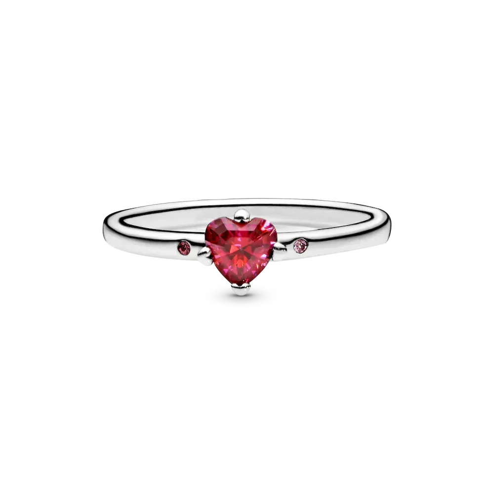 Our jewelry is defined by the things you love. Bring meaning to this dainty solitaire style by wearing it as part of your signature look or sharing with someone special. It’s made from sterling silver that’s set with a heart-shaped red cubic zirconia flanked by smaller stones. The shank is inscribed with the message