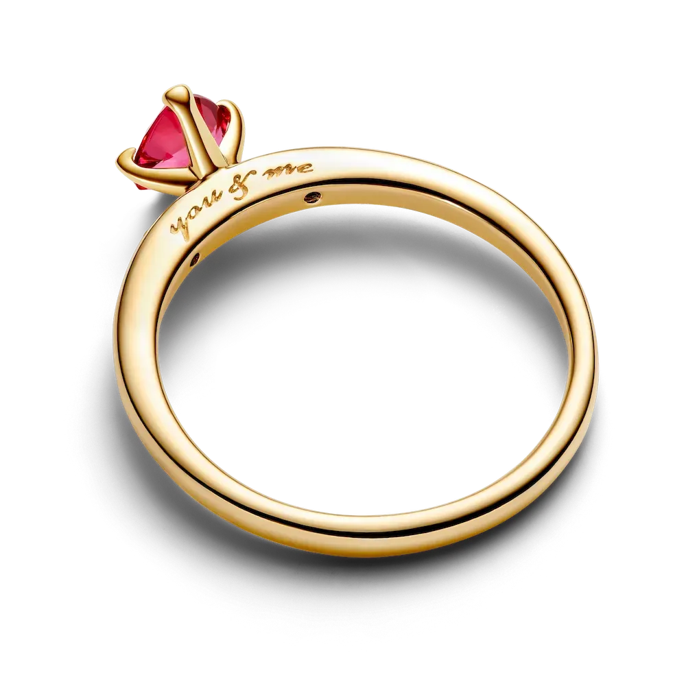 What’s love got to do with it? Everything. Inspired by the spirit of Valentine’s Day, this romantic ring captures the essence of affection and heartfelt gestures. Crafted from a 14k gold-plating, this special ring features a prong-set heart-cut red man-made crystal, framed by two flush-set cubic zirconia. An engraved “you & me” message on the shank adds an extra personal touch, making it the perfect gift for someone special.