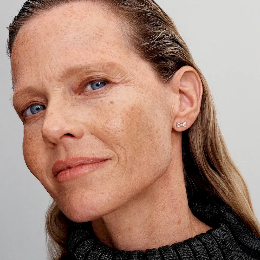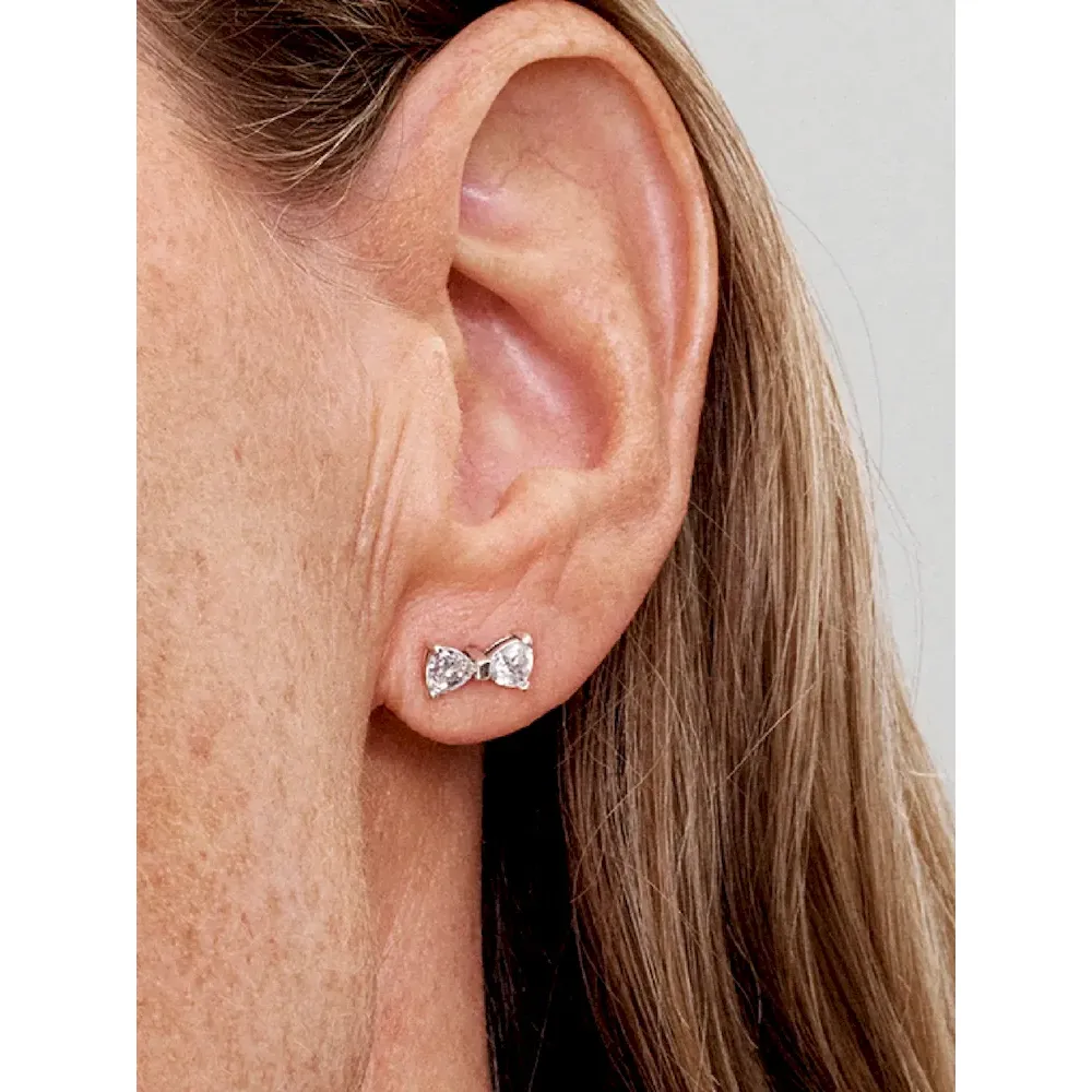 Add a light-filled touch to your look with the Sparkling Small Bow Stud Earrings. Featuring faceted stones that form a bow, this versatile style is crafted in sterling silver and shines with a cool glow. Perfect for wearing with casual outfits as well as on special occasions, the bow is a symbolic motif that always adds something extra to the everyday day. Style together with other bow pieces for a maximalist look or wear solo for a subtle take.