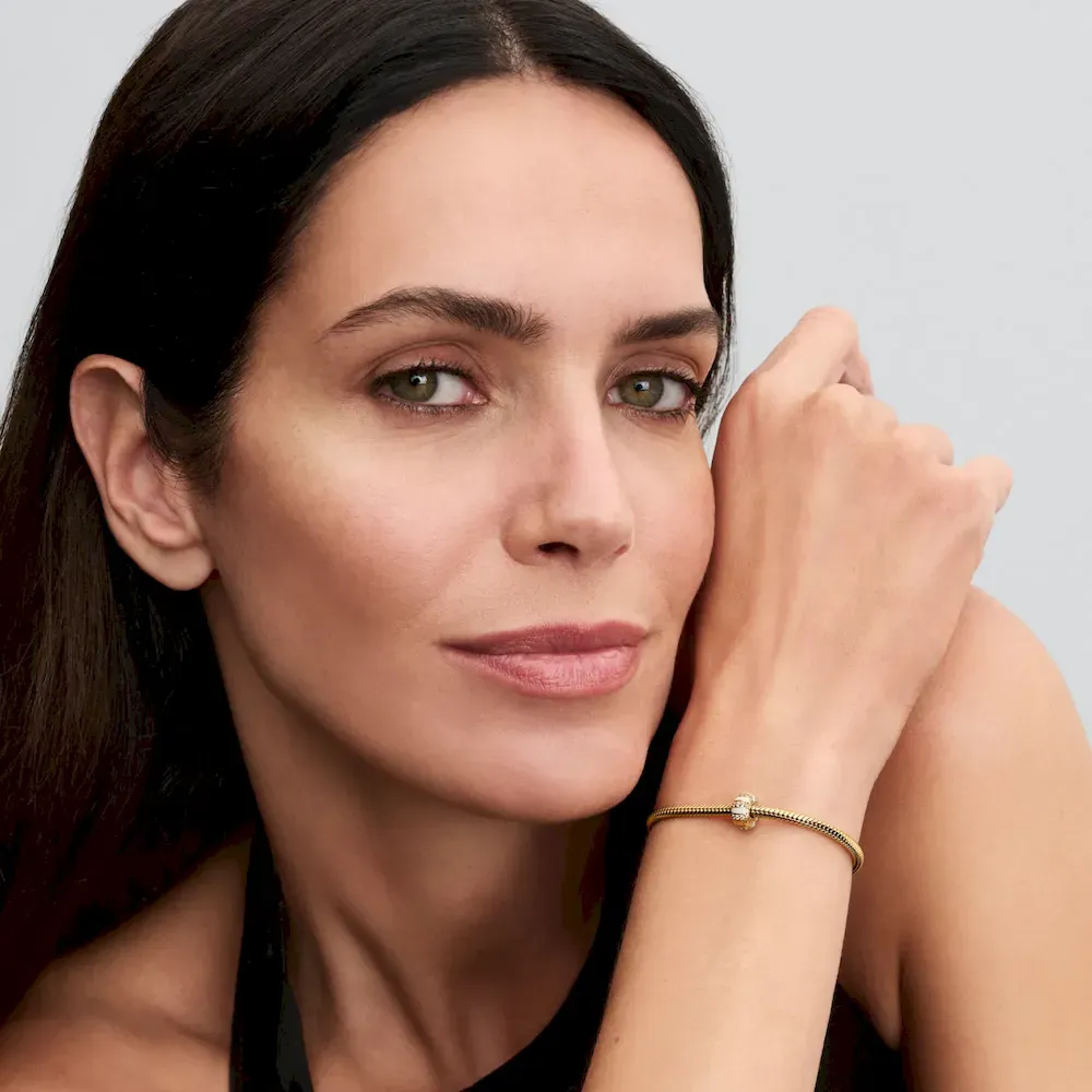 Your look will shine with the warm-toned Stones & Enamel Clip Charm. This 14k gold-plated charm features alternating rows of sparkling stones and shimmering white enamel, which contrast intriguingly with the charm’s gold-plated base, which also has a silicone grip inside the clip. The charm’s design was inspired by motifs of resilience and beauty –symbolizing the many possibilities you hold within you, much like the possibilities held within one small yet elegant and thoughtfully-made piece.