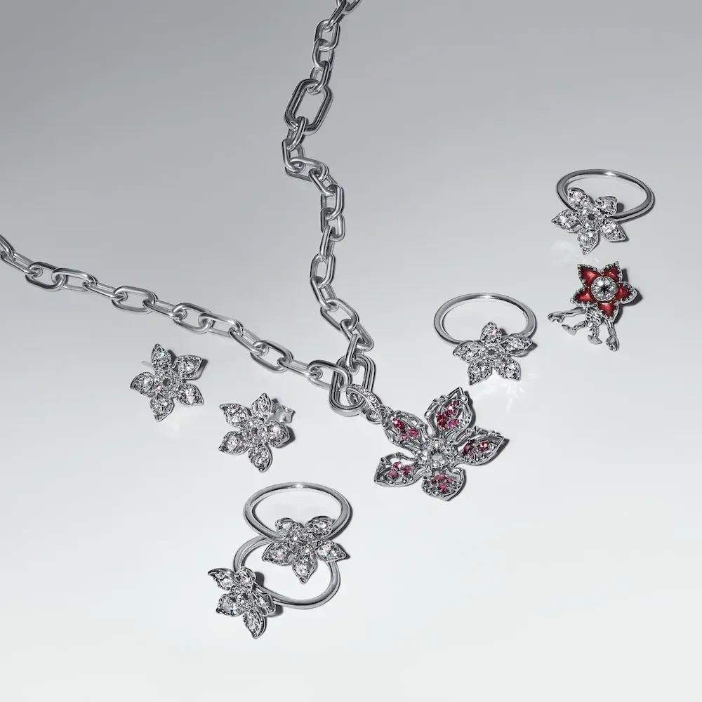 Keep your friends close and your demons closer with the Stanger Things Demogorgon Stud Earrings. Finished by hand, the sculptural pair features the Demogorgon’s flower-like open mouth on each stud, representing the unknown and fear of the other. The inside sparkles with clear cubic zirconia and the outer edges have stones that represent teeth. Style with your other meaningful favourites from your favourite series or gift to the Netflix fan in your life.