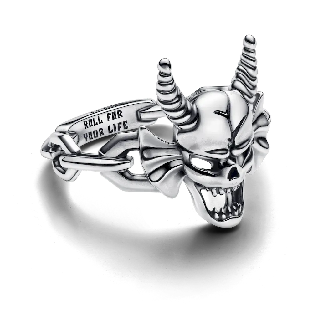 Keep your friends close and your demons closer with the Stanger Things Hellfire Club Ring. Finished by hand, the eye-catching piece features the Hellfire Club emblem – a horned demon head, which stands for togetherness, friendship and loyalty. The inside of the band features an engraving that reads “ROLL FOR YOUR LIFE” and the outside part is highlighted with bold, decorative links connected with a bar. Style with your other meaningful favourites or gift to the Stranger Things fan in your life.