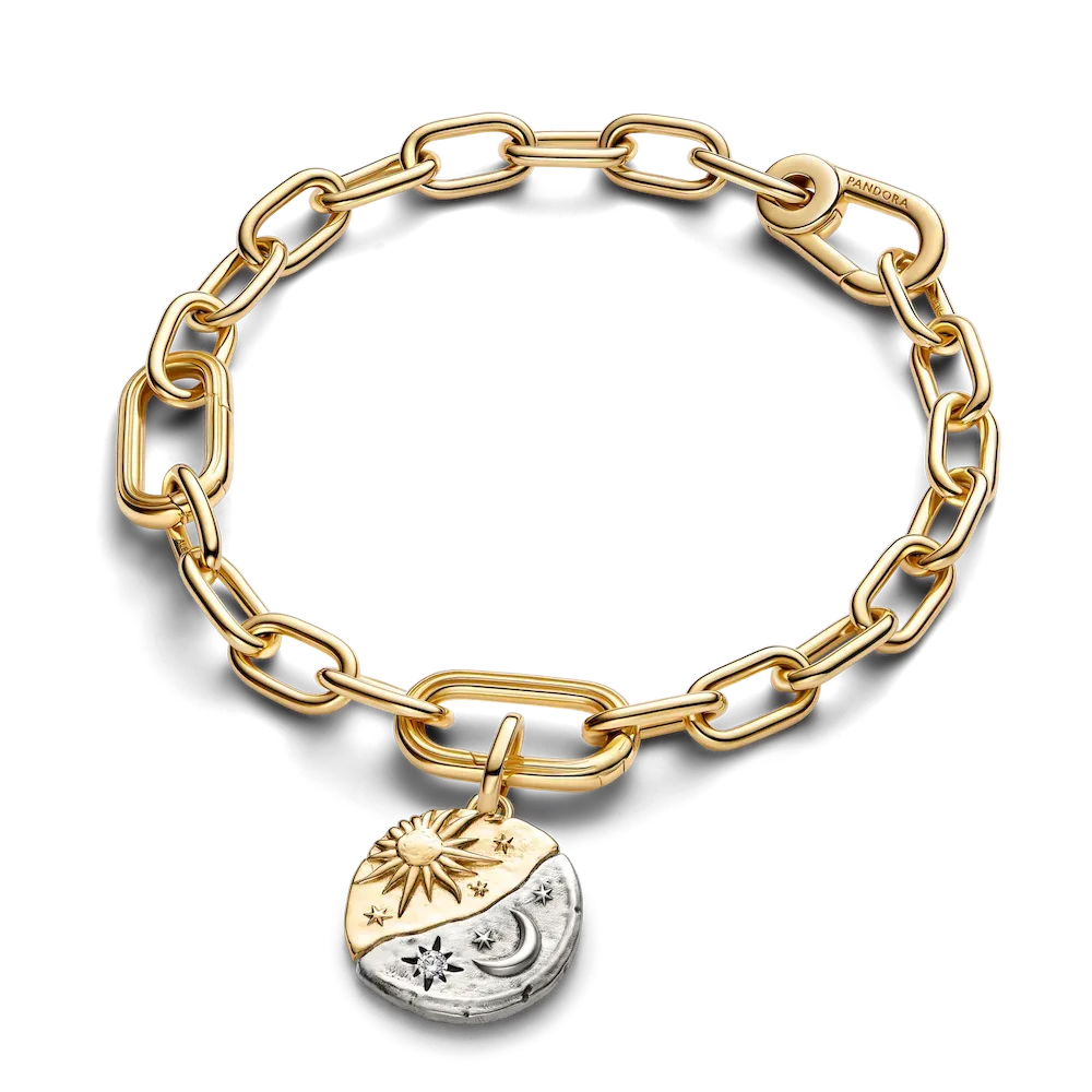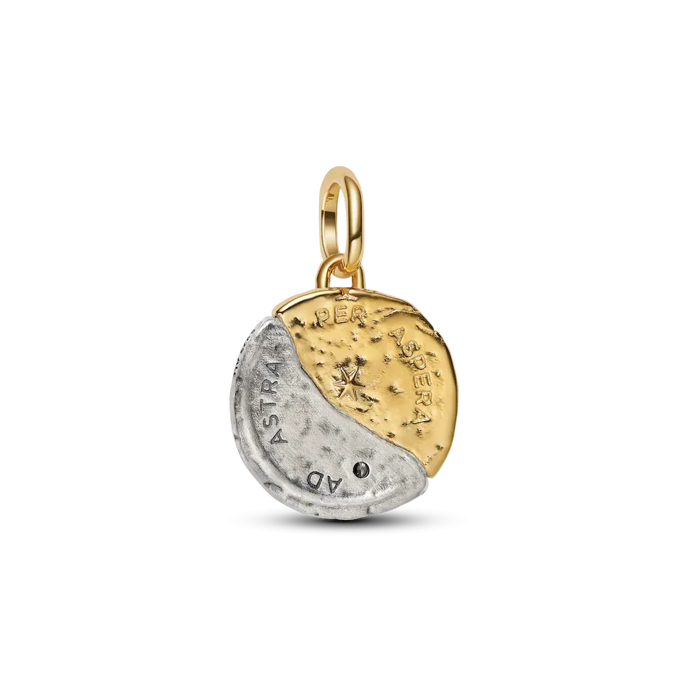 Make the sky your limit with this sterling silver and 14k gold-plated bracelet set. One side of the medallion is inspired by celestial motifs while the other is engraved with an inspiring Latin message.