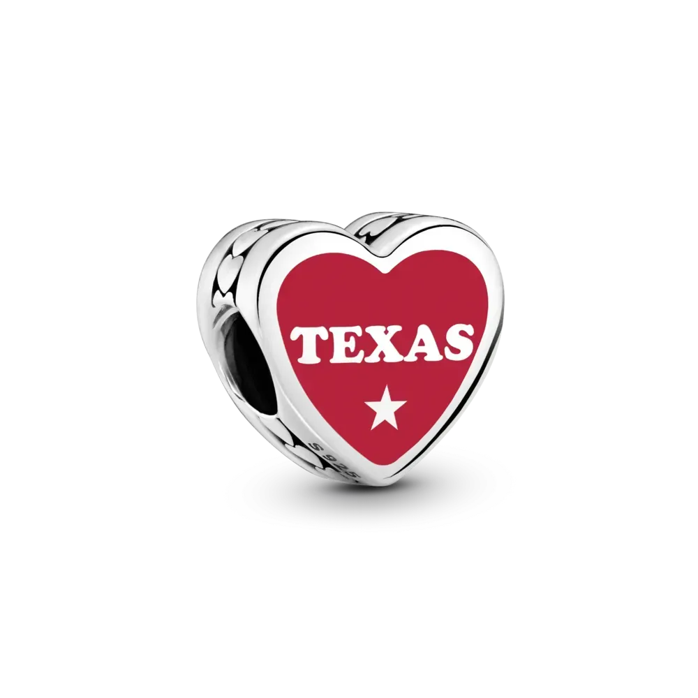 For the state that’s as bold as you are—wear its Texan charm with pride. Crafted in sterling silver, this heart-shaped symbol showcases the state’s historic architecture, the Texas flag proudly waving in the wind and a beautiful bluebonnet, captured in vibrant hues of glossy enamel. The other side displays