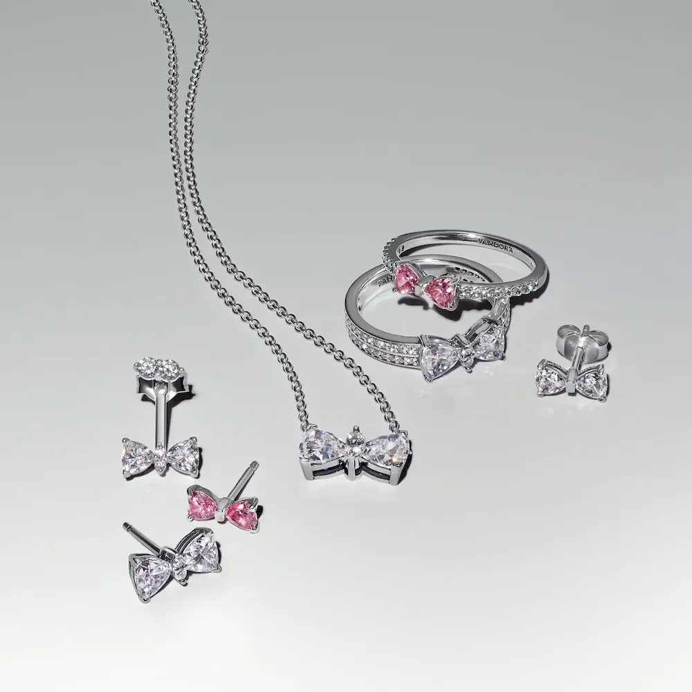Add a burst of fun and love to your collection with the Think Pink Ring Set. The Pink Chakra Heart Ring features a prong-set heart-shaped pink crystal surrounded by sparkling pink enamel and a touch of playfulness with its partly enamelled band—perfect for a daily dose of self-love. The Sparkling Pink Bow Ring brings extra flair with two heart-cut pink cubic zirconia stones and a cute bow design, all set on a band sprinkled with clear cubic zirconia for that extra sparkle. Mix, match, and wear these vibrant rings to keep the pink love going strong.