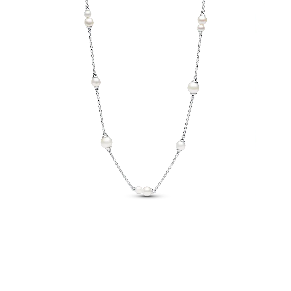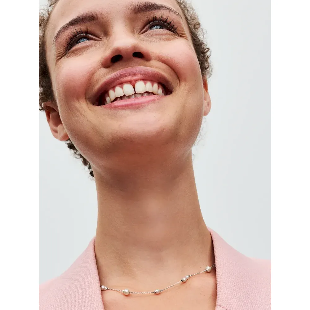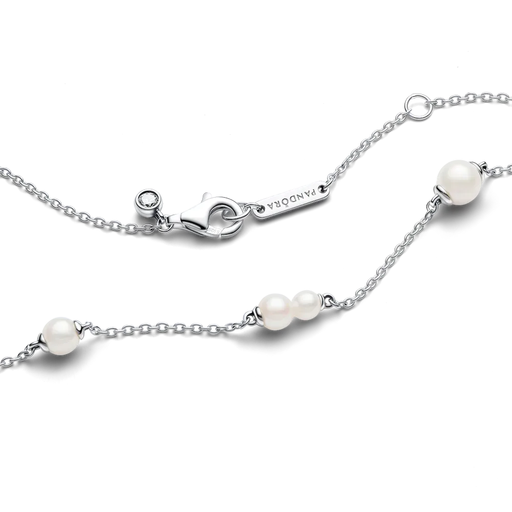 Shine like there’s no tomorrow with our Treated Freshwater Cultured Pearl Station Chain Necklace. Crafted in sterling silver, this silver pearl necklace features 13 white treated freshwater cultured pearls, each uniquely beautiful. They’re set along a 45 cm cable chain, with adjustable lengths of 42 cm and 38 cm to suit your style. Whether a symbol of wisdom, beauty, or love, this necklace is a perfect gift for someone special or a stylish addition to your own collection. Please note that each treated freshwater cultured pearl is unique and can vary in size and color; normal wear and tear may occur with this material. Our freshwater cultured pearls are treated with bleaching and luster enhancement.