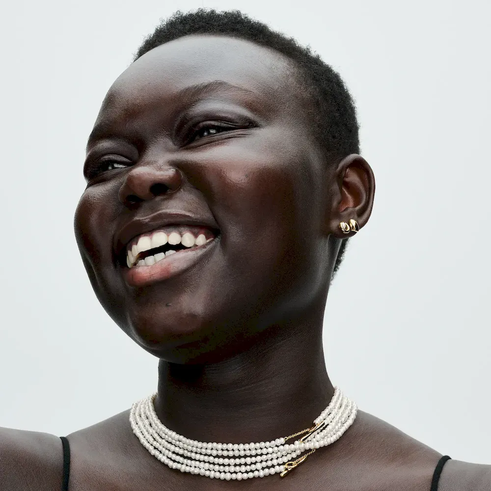 Introducing a new kind of classic with the Treated Freshwater Cultured Pearls T-bar Collier Necklace. This necklace features a row of tiny, elongated treated freshwater cultured pearls that close with an organically-shaped 14k gold-plated T-bar closure. Each treated freshwater cultured pearl is unique and can vary in size and color; normal wear and tear may occur with this material. Our freshwater cultured pearls are treated with bleaching and luster enhancement.
