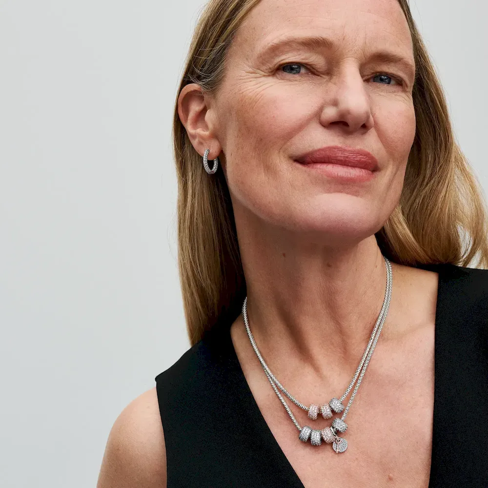 Unlock joy with the Two-tone Key To Happiness Double Dangle Charm. Crafted from sterling silver and featuring 14k rose gold plating, this two-one dangle charm features a round disc adorned with sparkling details. Engraved with