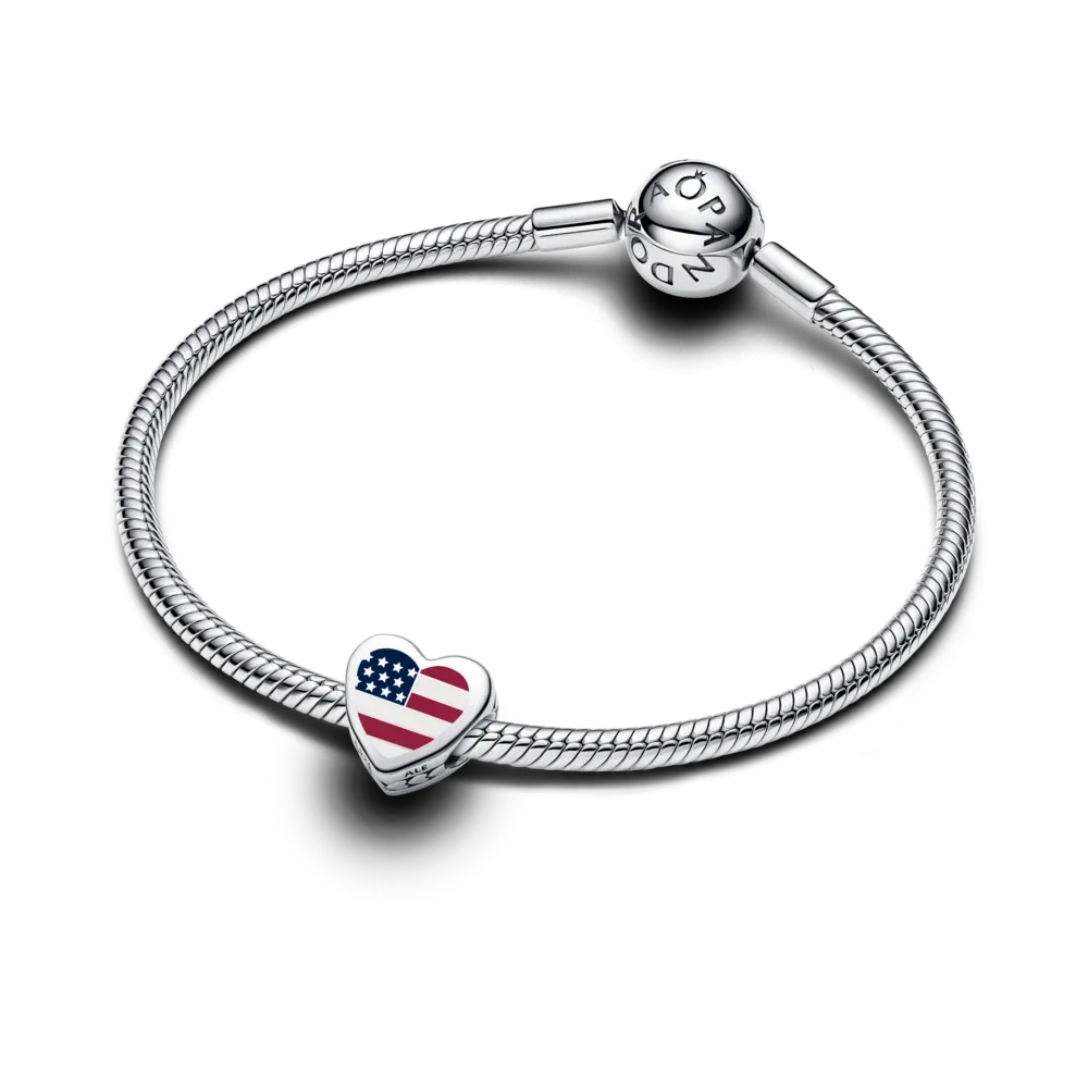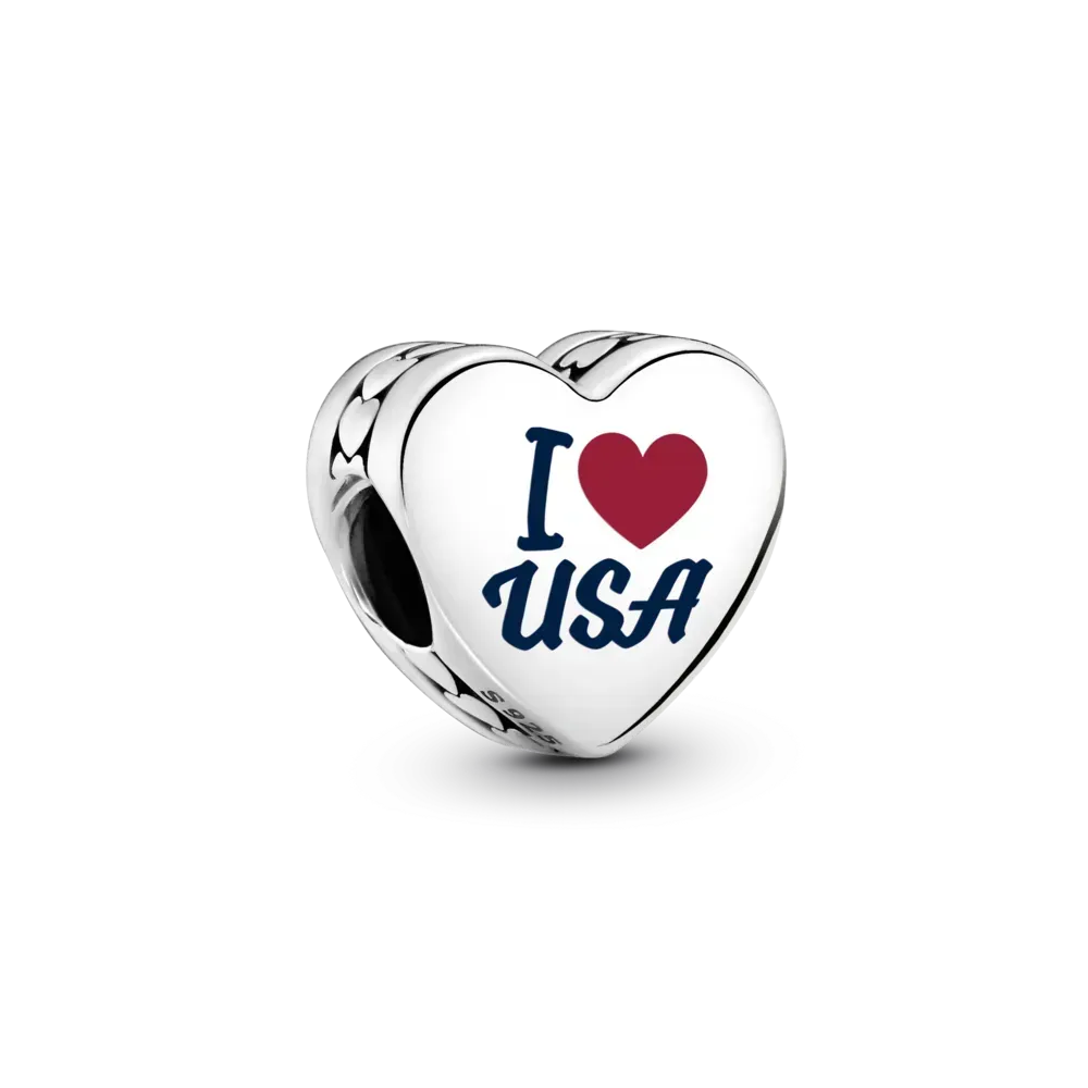 For the country that has a special place in your heart—add its charm to your style! Displaying the American flag in glossy enamel on the front and the iconic “I ♥ USA” insignia on the back. This sterling silver, heart-shaped charm shines with love for the red, white, and blue. Wear it as a way to show your patriotic pride every day.