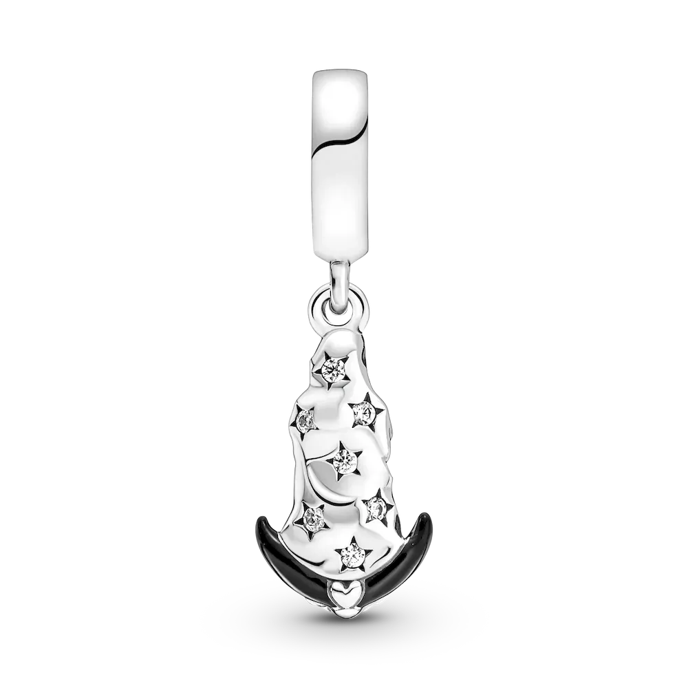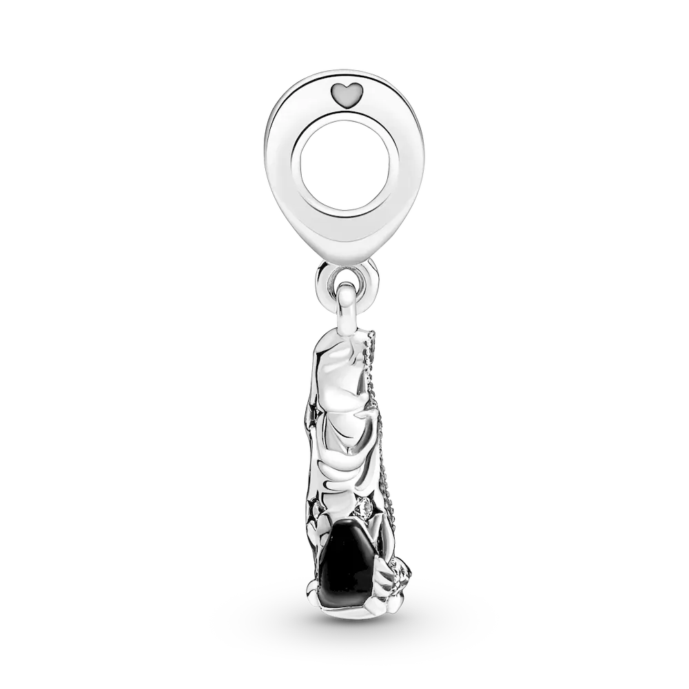 Keep your faith close with the Virgin of Guadalupe Motif Dangle Charm. This sterling silver charm features the Virgin, her hands clasped, standing serenely on a crescent moon carried by an angel. Black hand-applied enamel adds a striking touch, while the cloak is decorated with sparkling stones set in stars and small micro beads on the edge. The bail features one stone set in a star on the front, as well as engraved hearts on the sides.