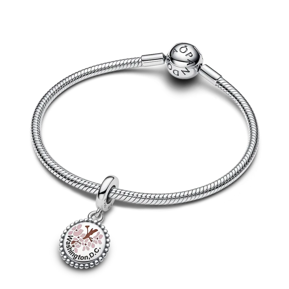 Celebrate the beauty and symbolism of the U.S. capital with the Washington D.C. Cherry Blossom Dangle Charm. Featuring vibrant enamel detailing, this sterling silver piece is inspired by the city’s iconic cherry blossoms that bloom each spring during the National Cherry Blossom Festival. Representing hope and fresh beginnings, it serves as a reminder that beauty and renewal are always within reach, even in the heart of a bustling city.